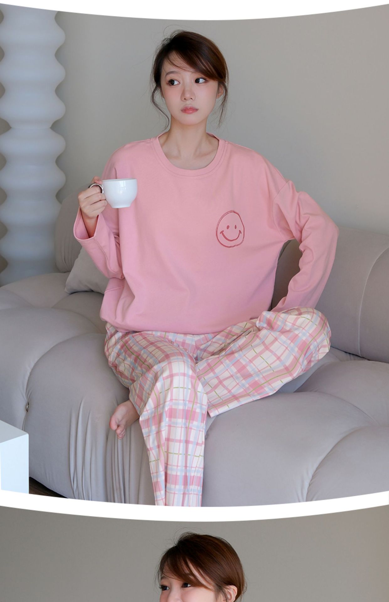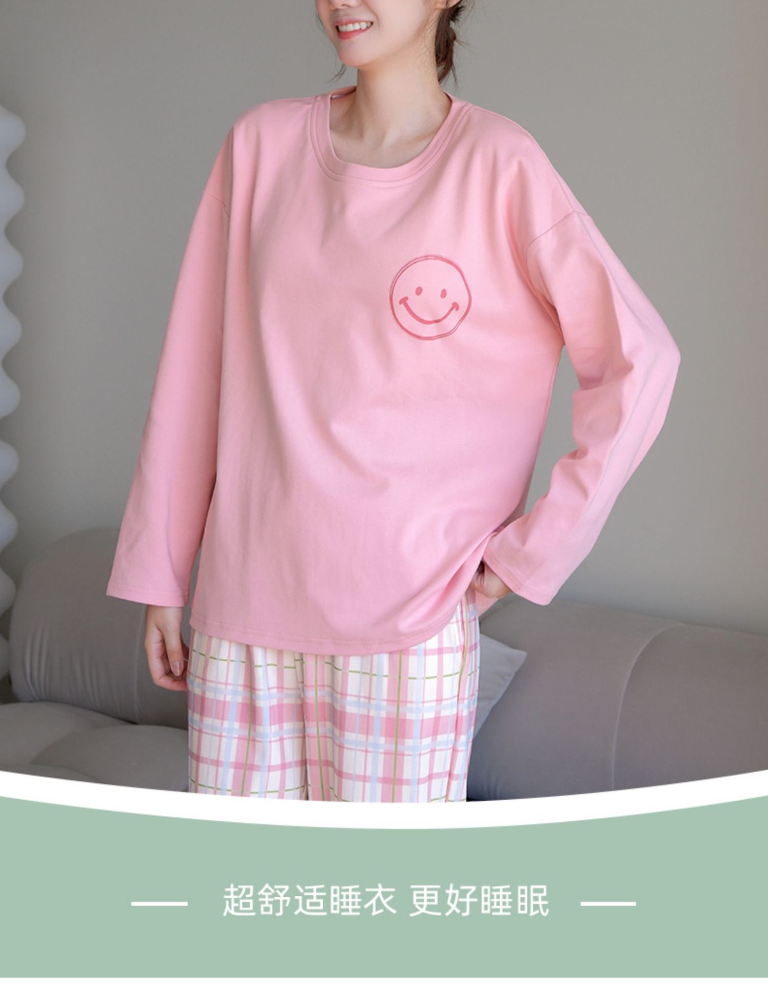 • [가슴 패드가 있는 긴소매] 핑크 스마일리 페이스