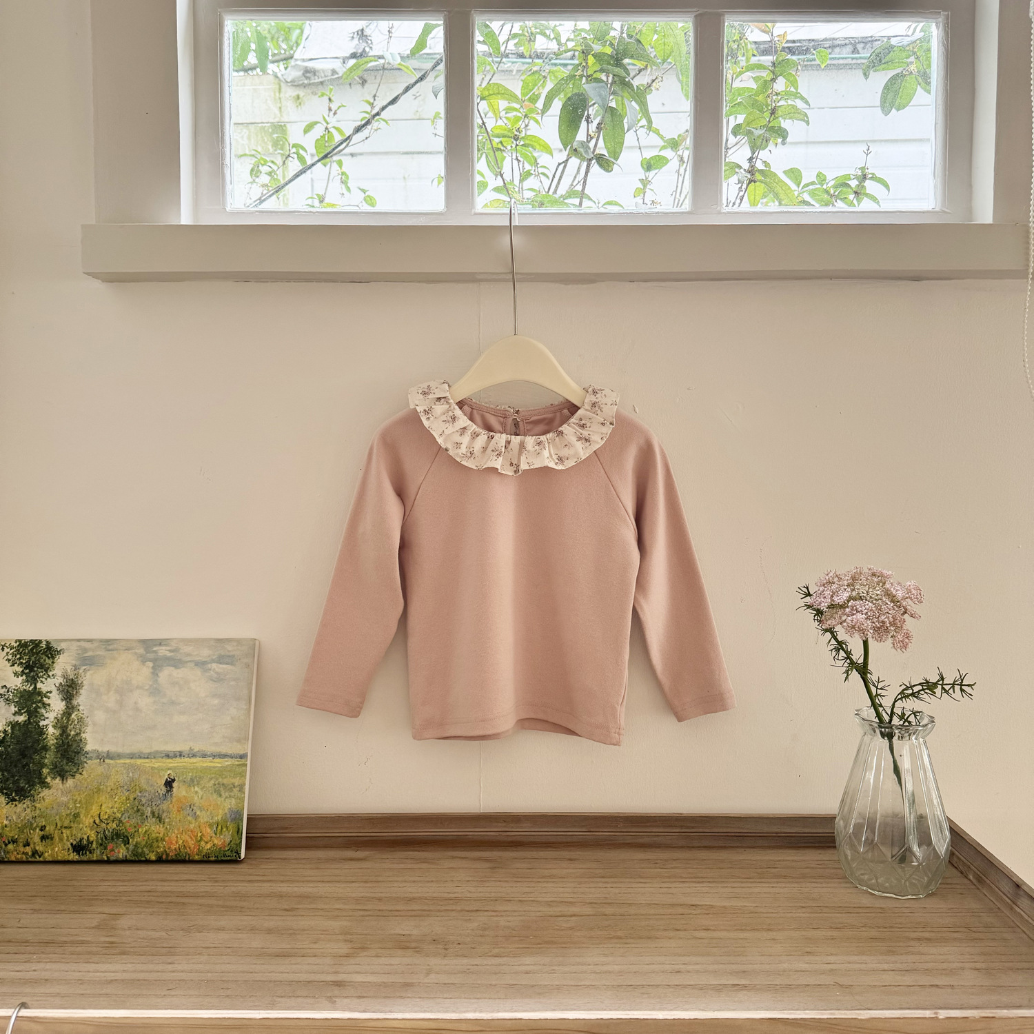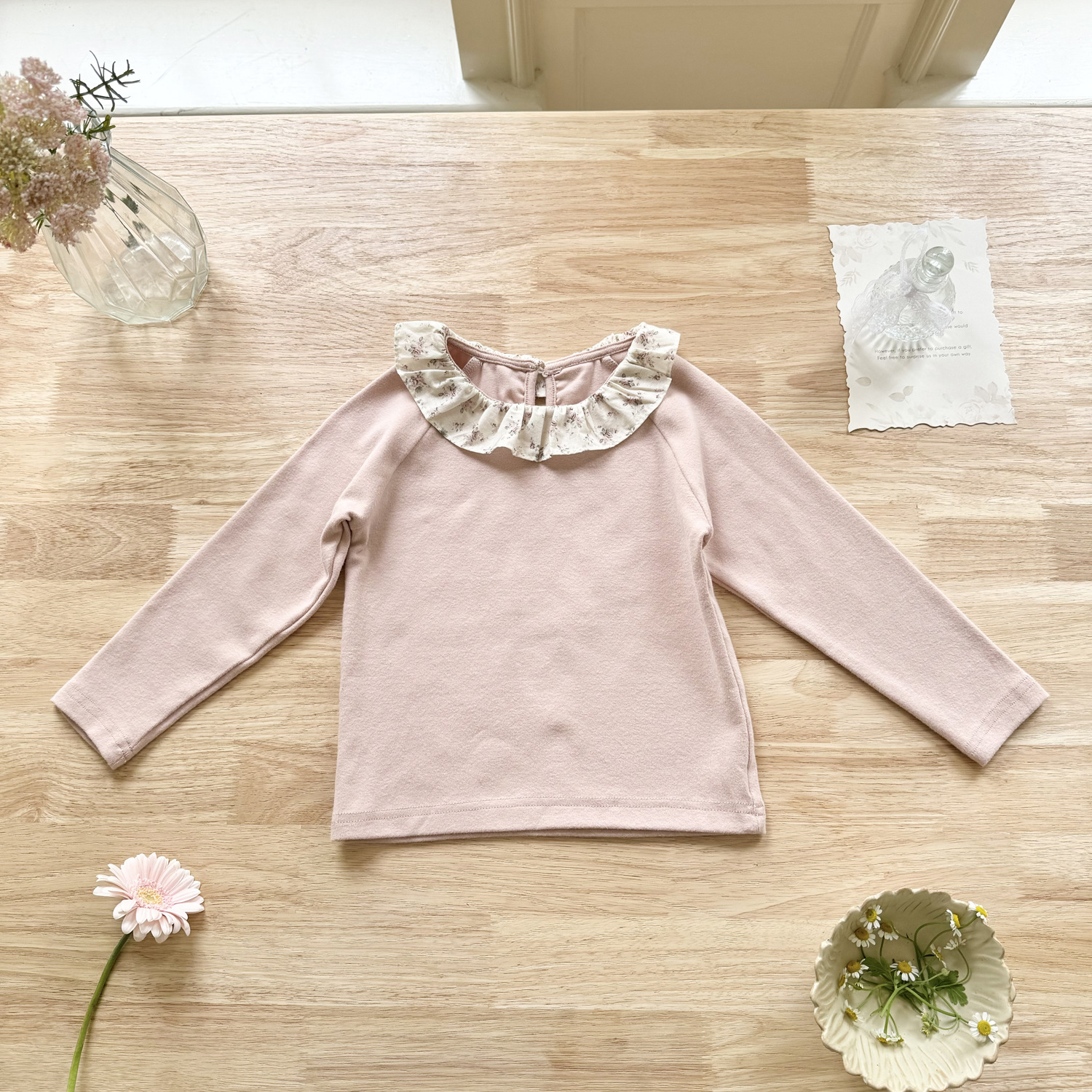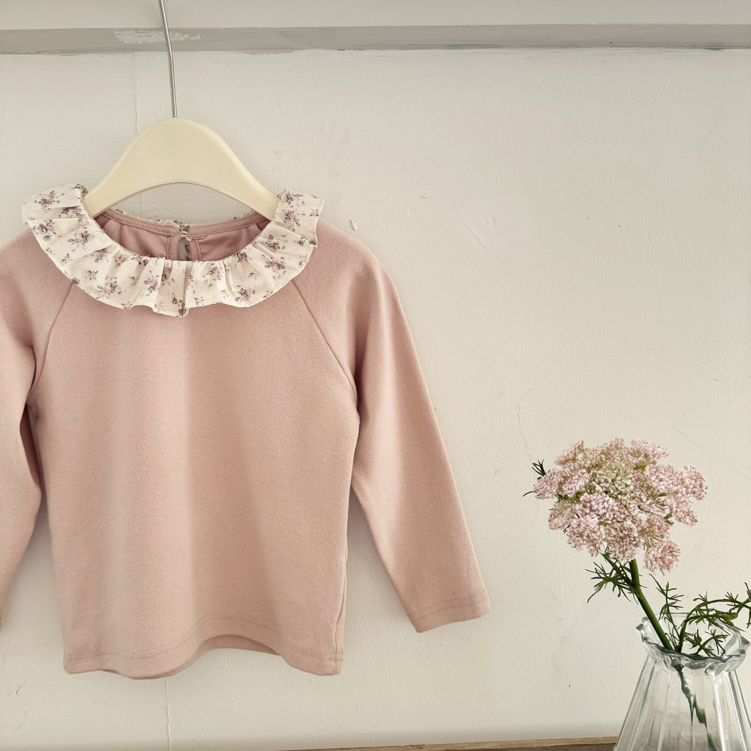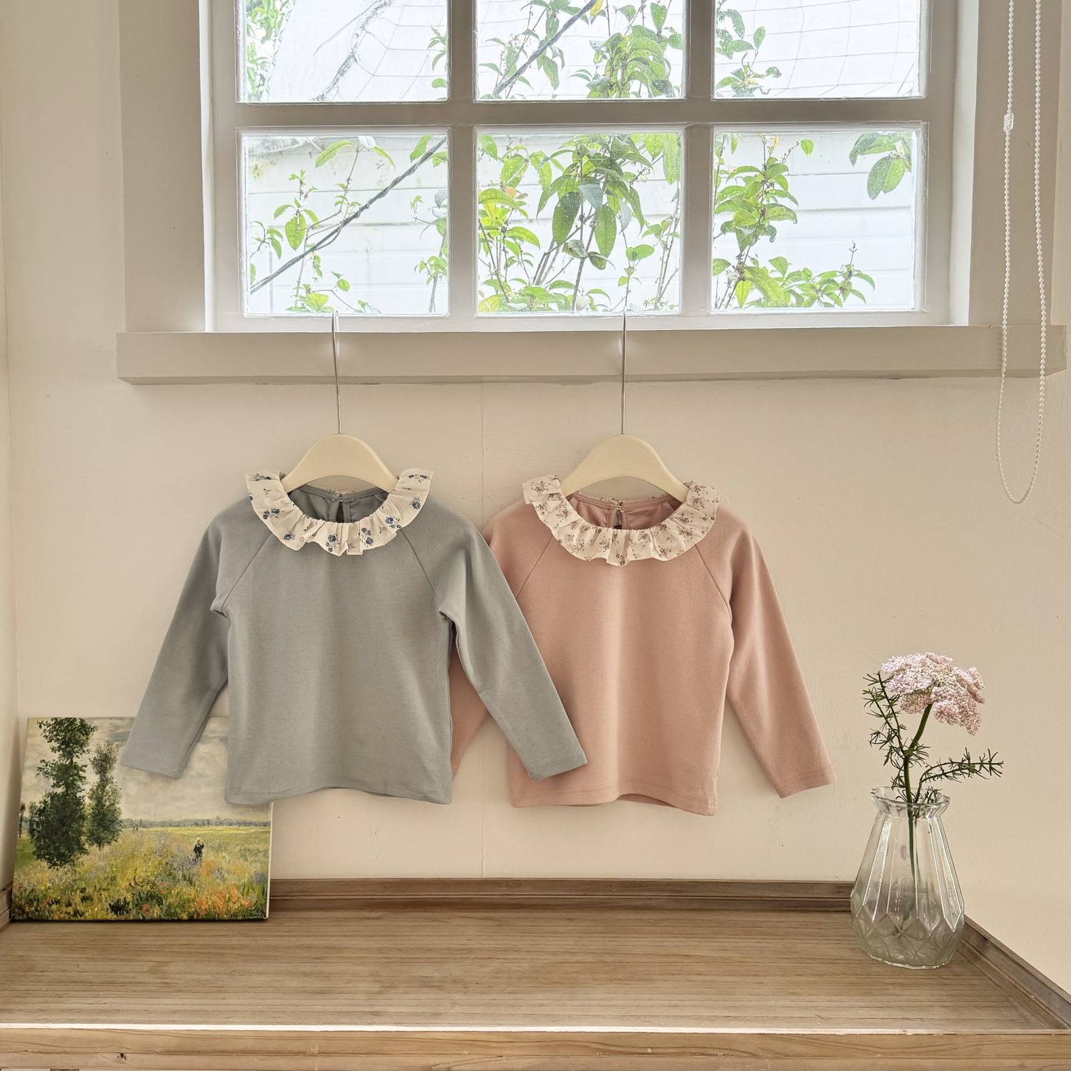 25 봄 가을 인스 스타일 여아 니트 이너웨어 러플 칼라 이너 티셔츠 여아용 이너웨어 기모 니트 티셔츠스토어 가기