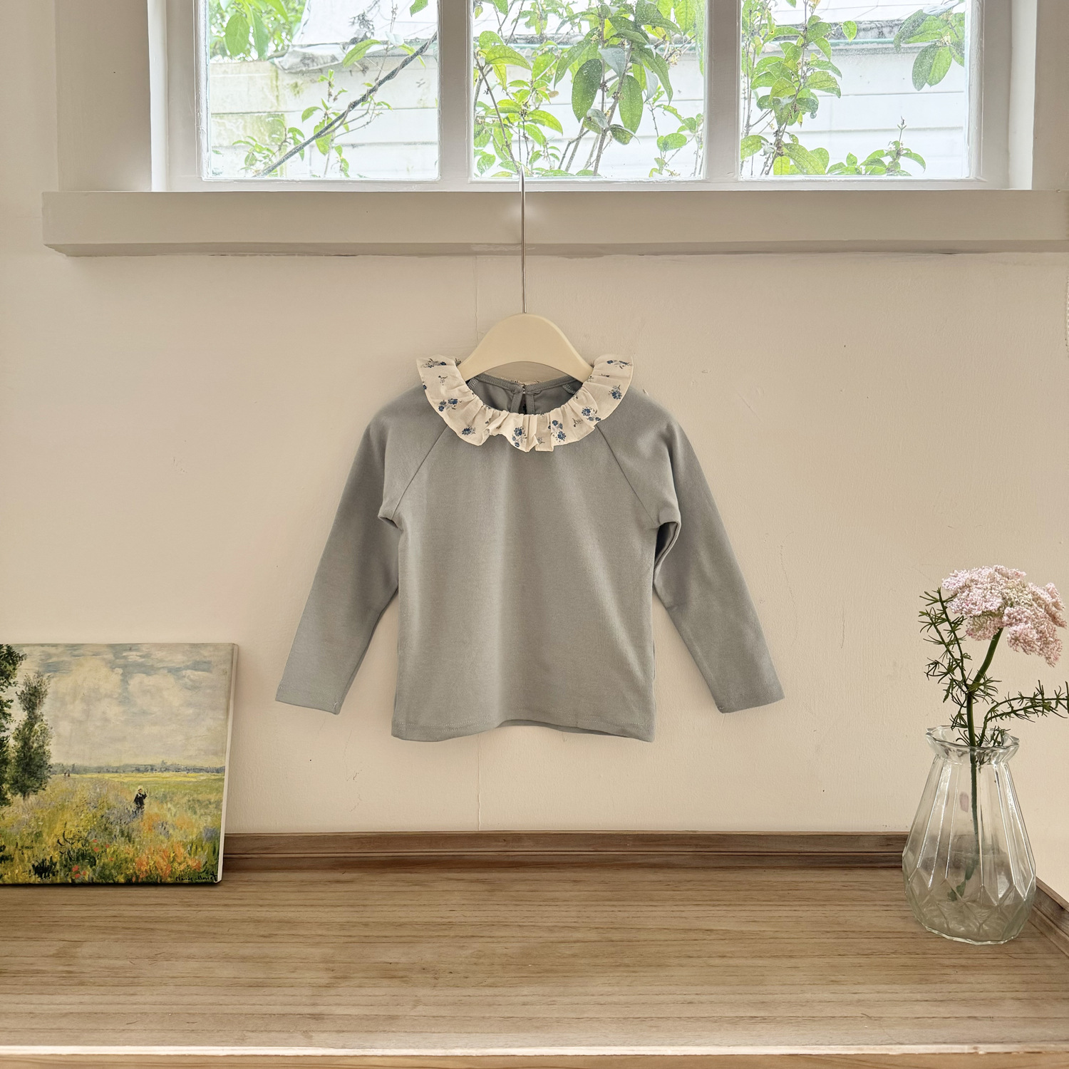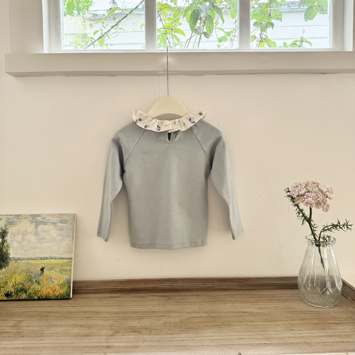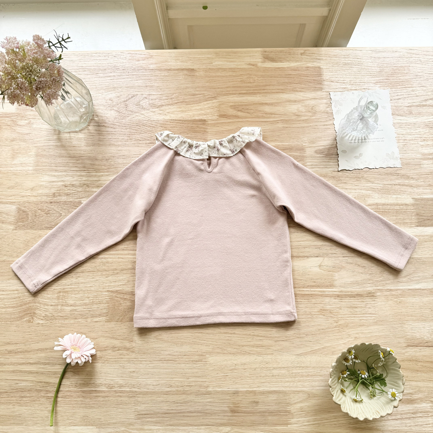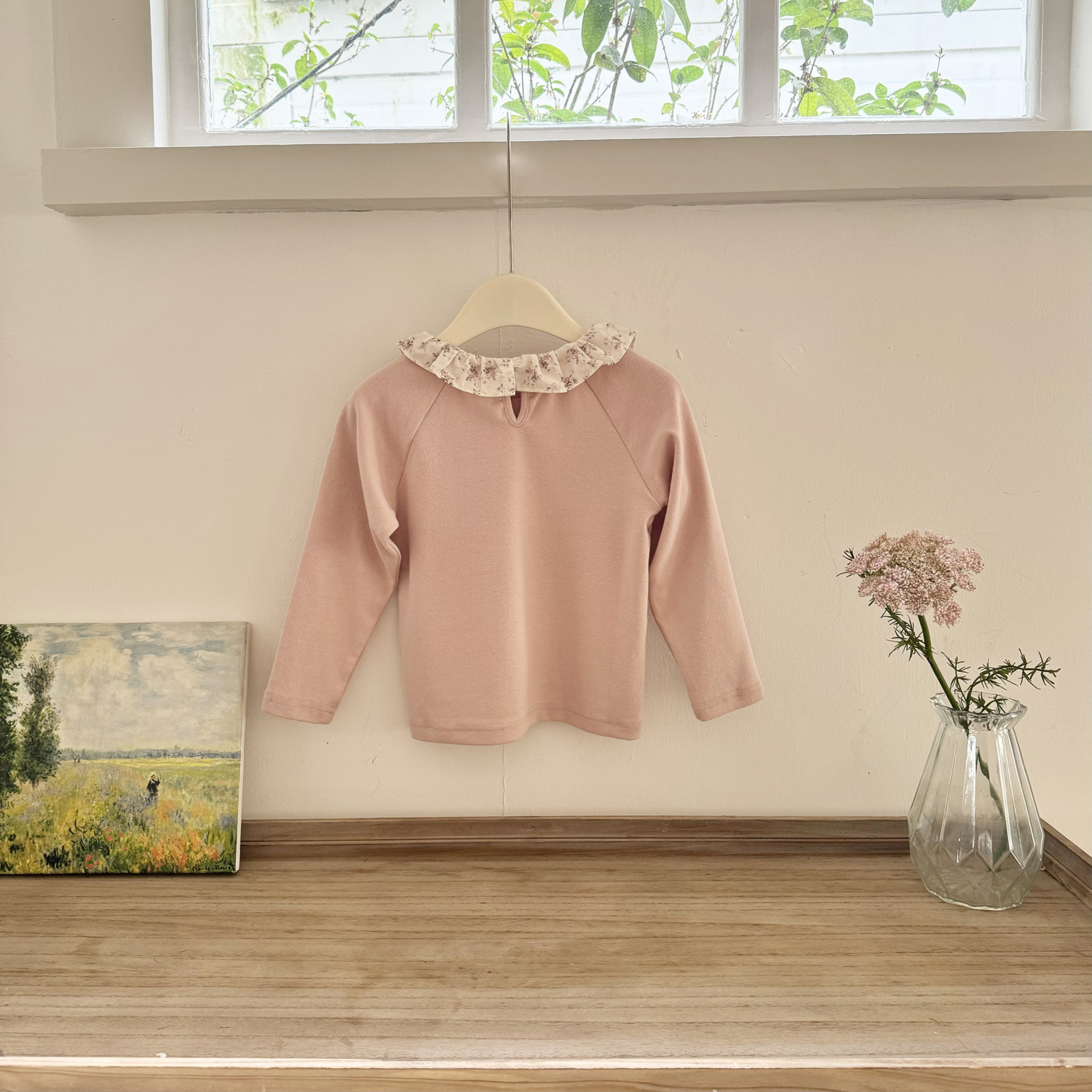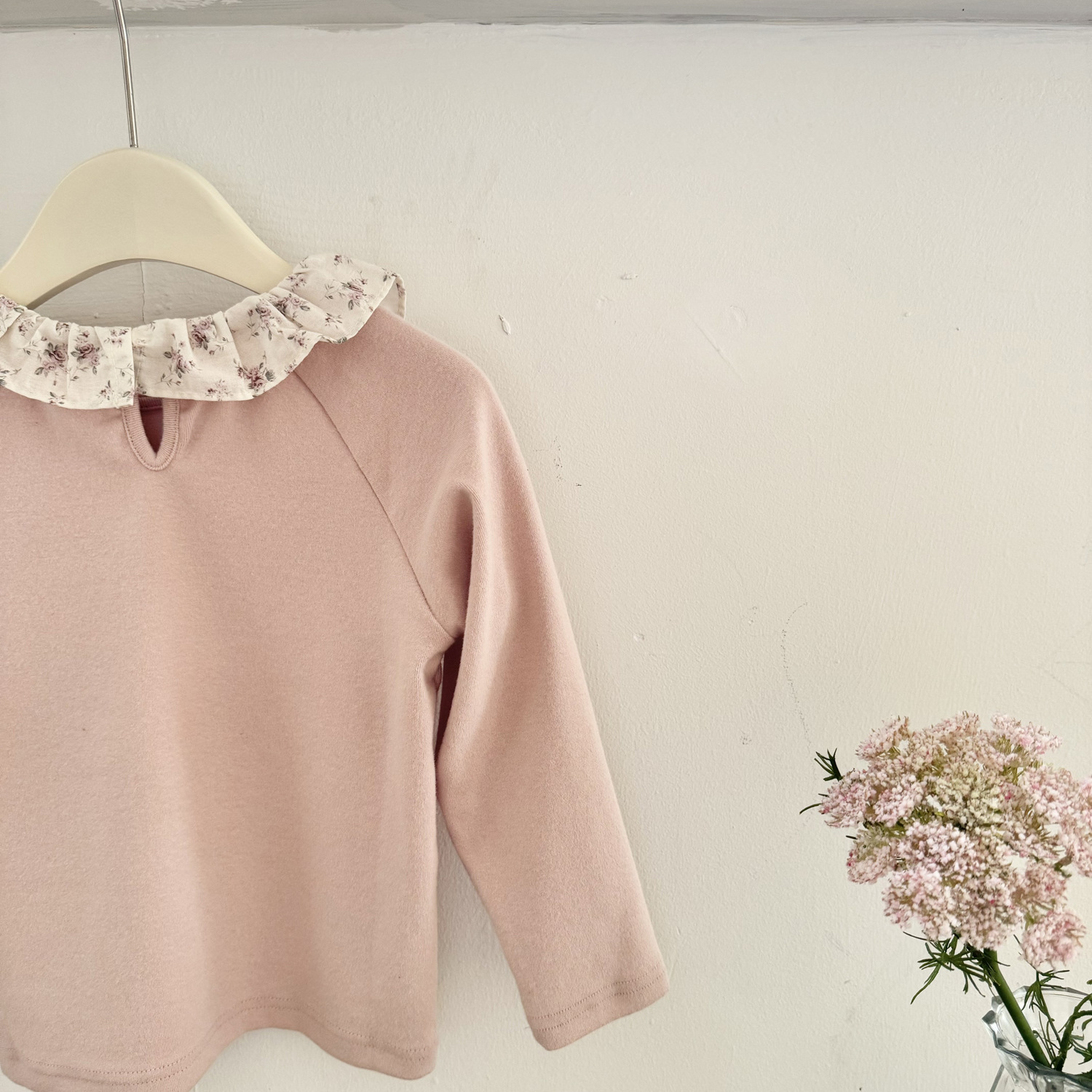 25 봄 가을 인스 스타일 여아 니트 이너웨어 러플 칼라 이너 티셔츠 여아용 이너웨어 기모 니트 티셔츠스토어 가기