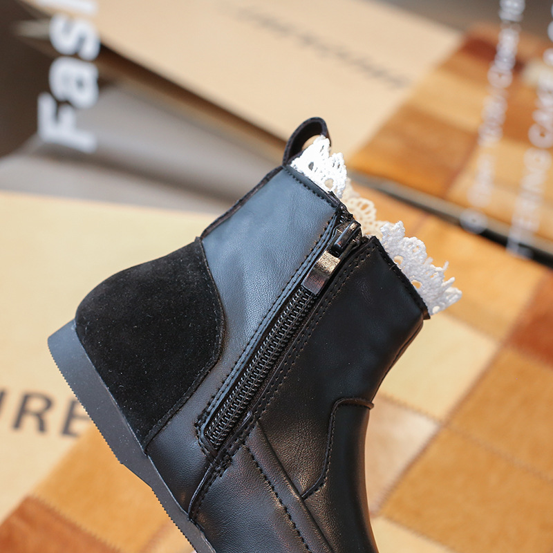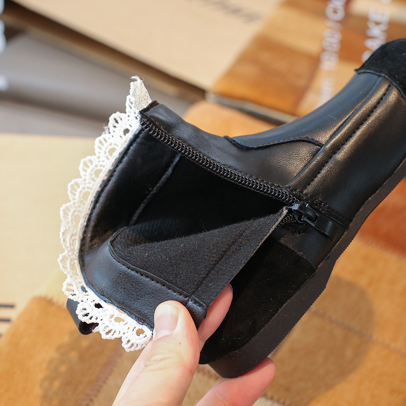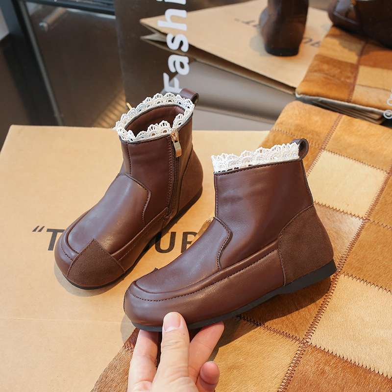 레이스 레이스 어린이 마틴 부츠 2024 가을 겨울 새 소녀 부츠 기모 어린 소녀 공주 패션 발목 부츠스토어 가기