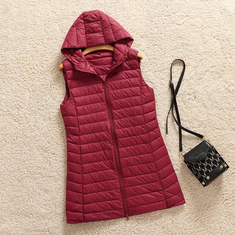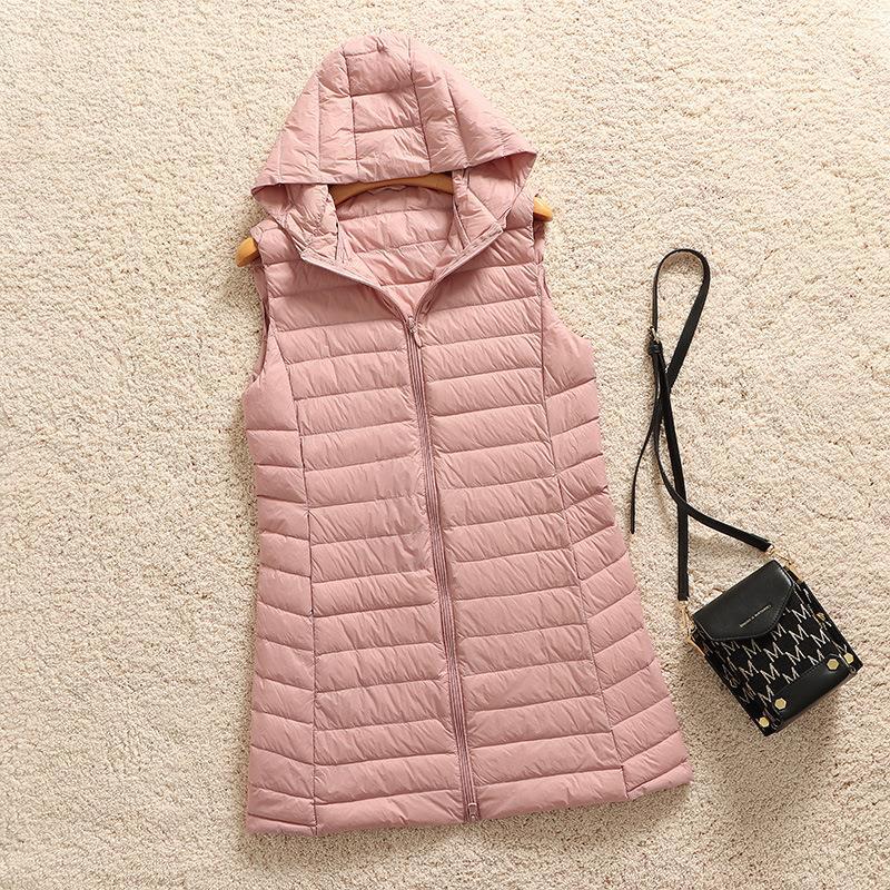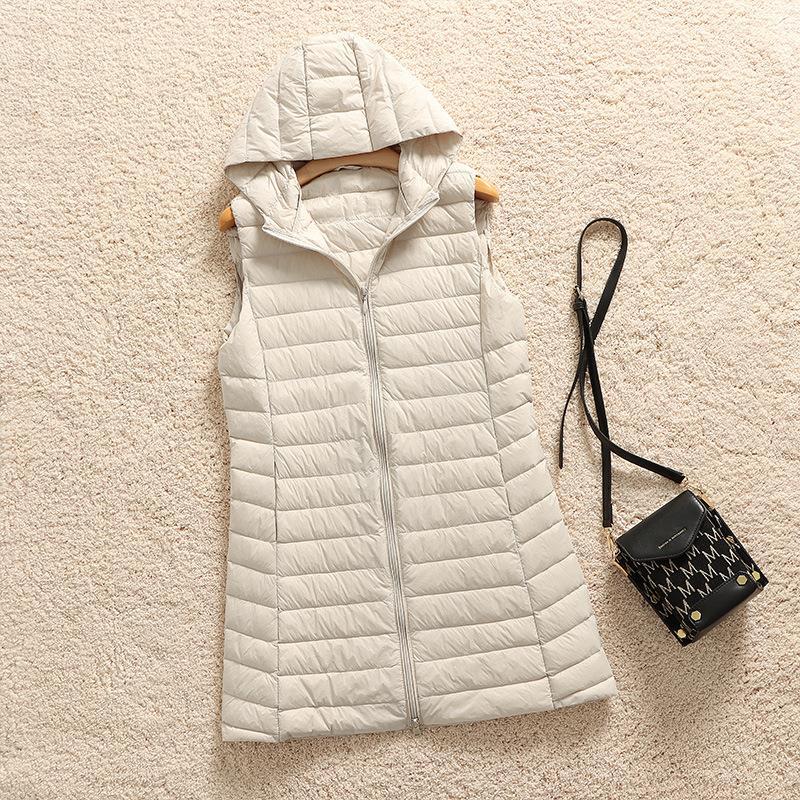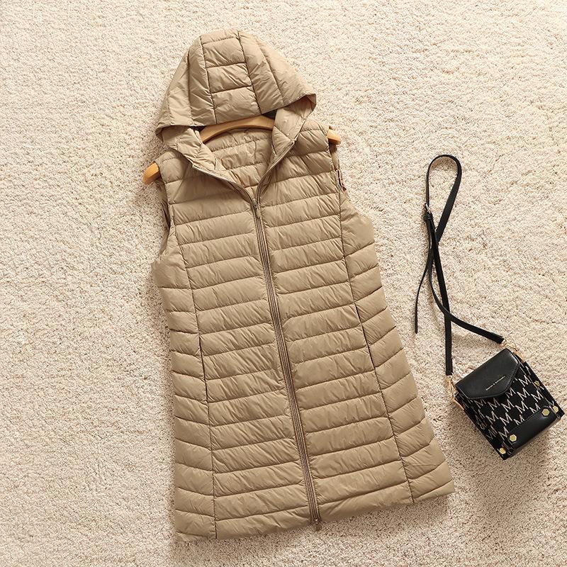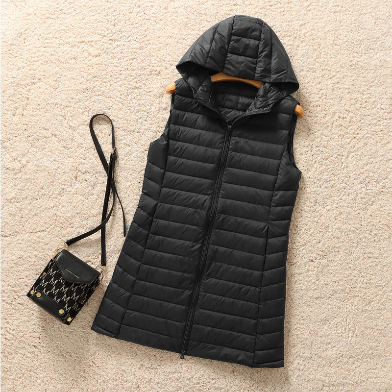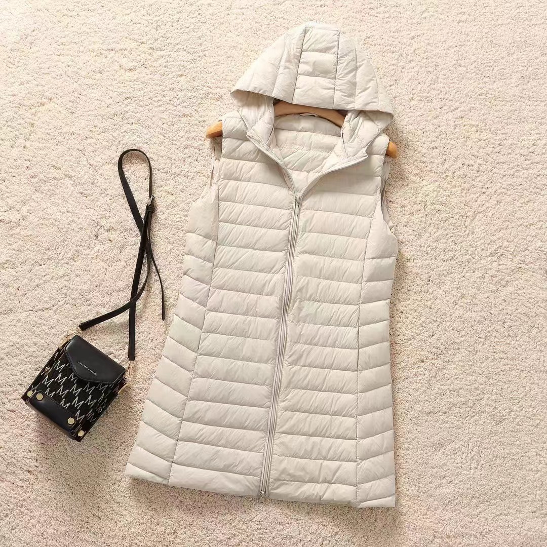 2025 가을 겨울 신상품 경량 슬림핏 다운 재킷 후드 다운 조끼 여성용 중간 길이 조끼 코트 이너웨어 트렌디