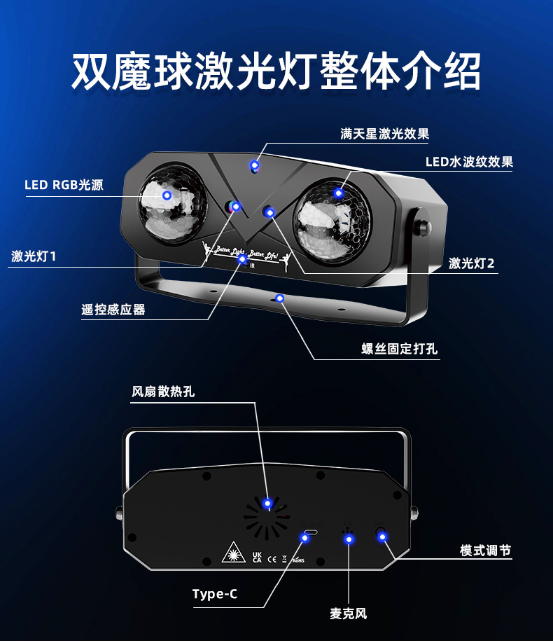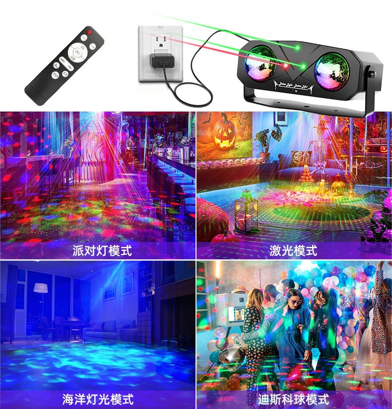 LED 레이저 더블 헤드 매직 볼 라이트 파티 라이트 별이 빛나는 하늘 오션 웨이브 프로젝터 3-in-1 디스코 DJ 무대 조명