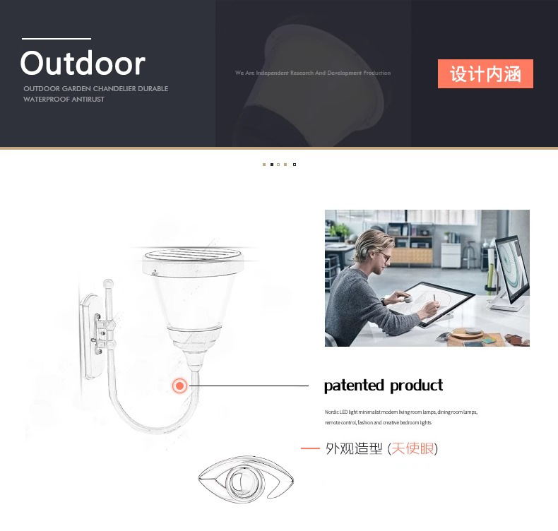 태양 벽 빛 야외 방수 홈 정원 라이트 도어 벽 빛 야외 정원 빌라 전망대 외부 벽 빛