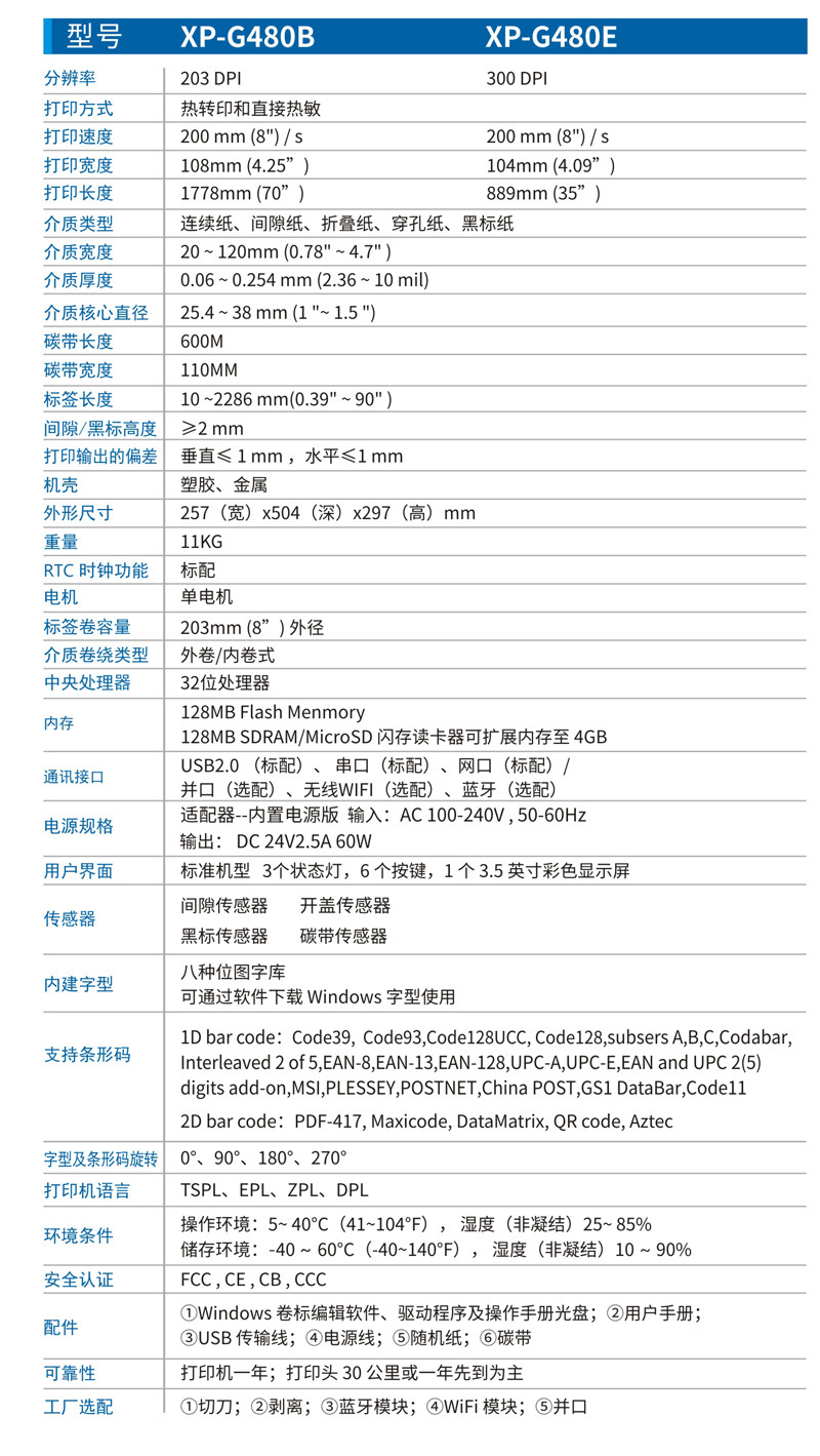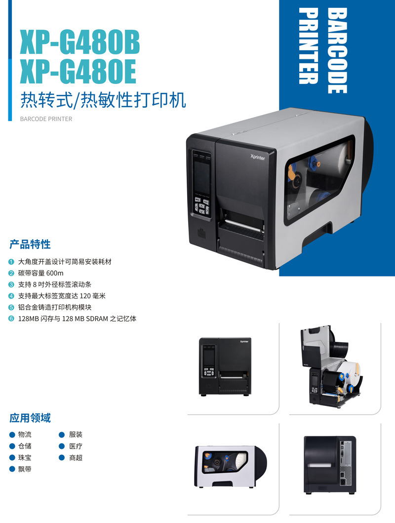 Xinye XP-G480E 산업 라벨링 기계 바코드 2 차원 접착제 고정 자산 익스프레스 단일 프린터스토어 가기