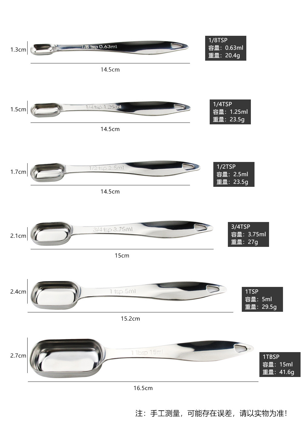 스테인레스 스틸 측정 숟가락 8 개 세트 사각형 측정 숟가락 주방 조미료 측정 숟가락 주방 베이킹 스케일 측정 숟가락