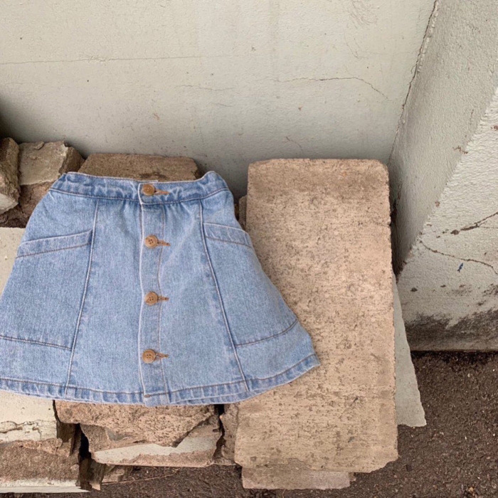 한국 어린이 여름 원피스 한국 어린이 치마 소녀 일본과 한국 스타일 맞춤형 싱글 버튼 A-라인 데님 스커트 1