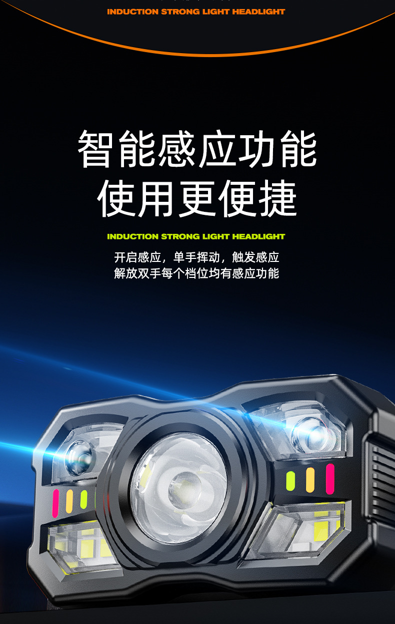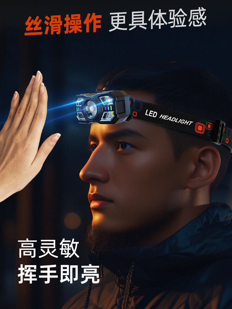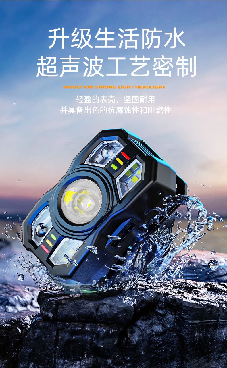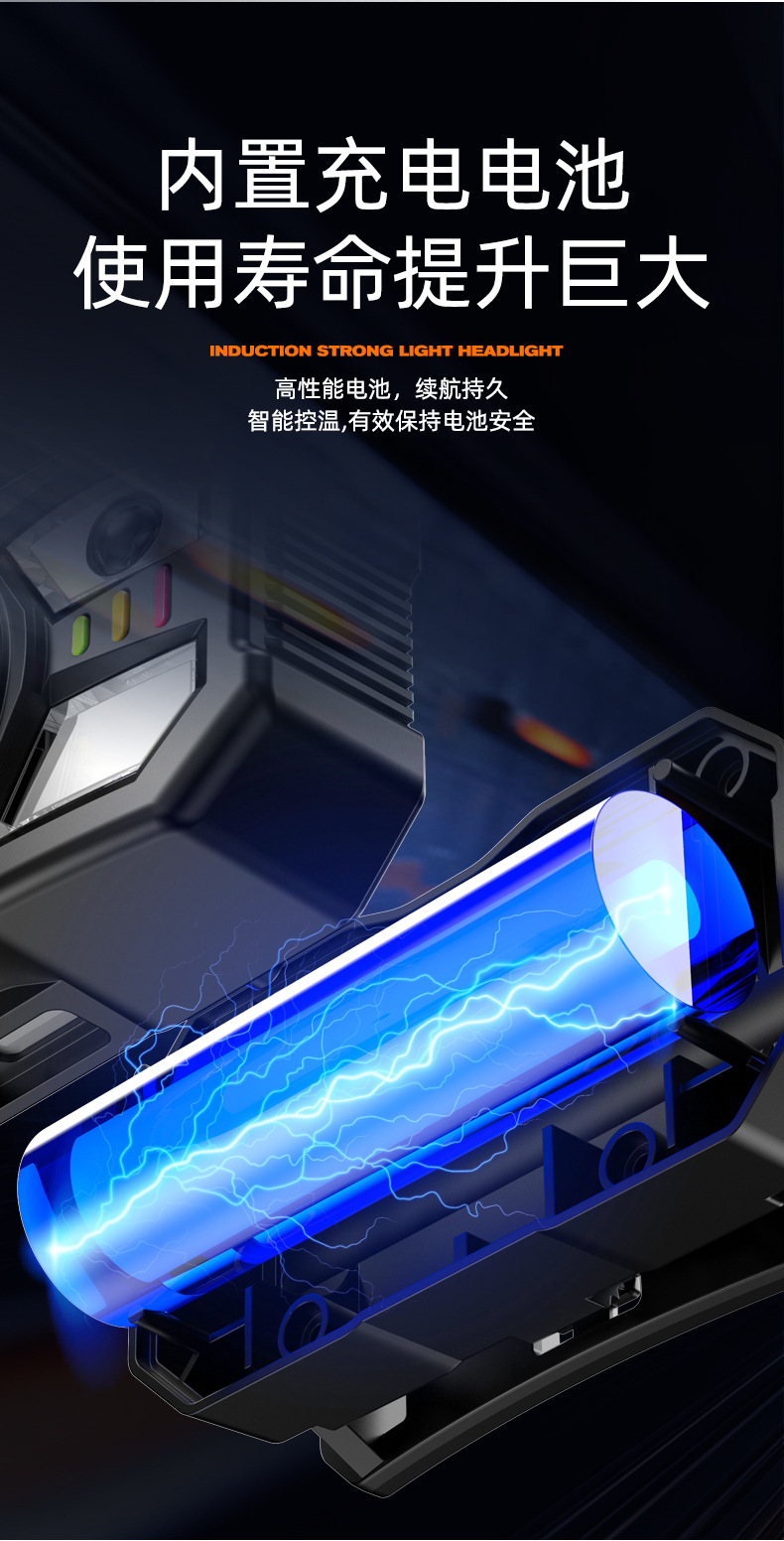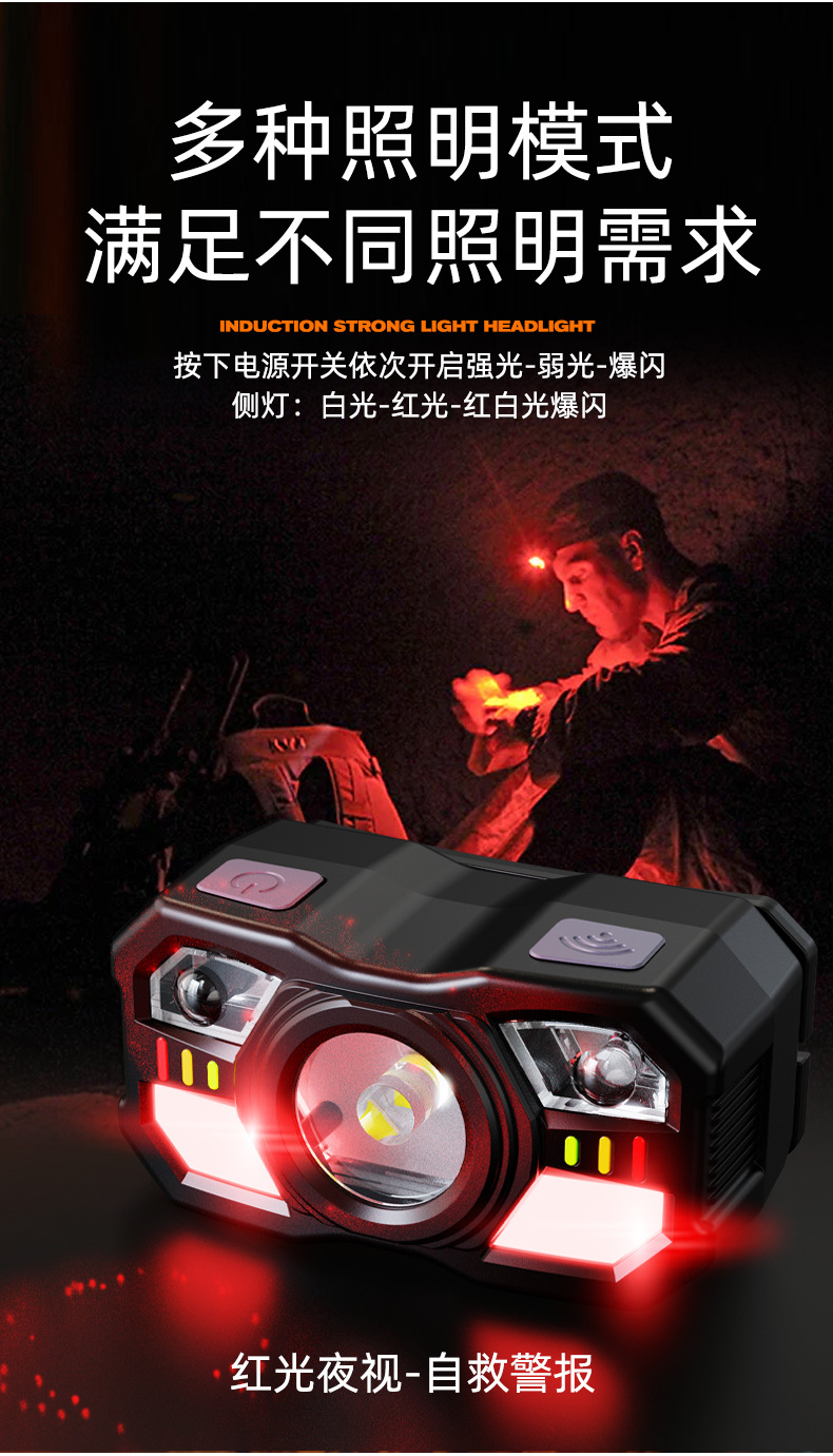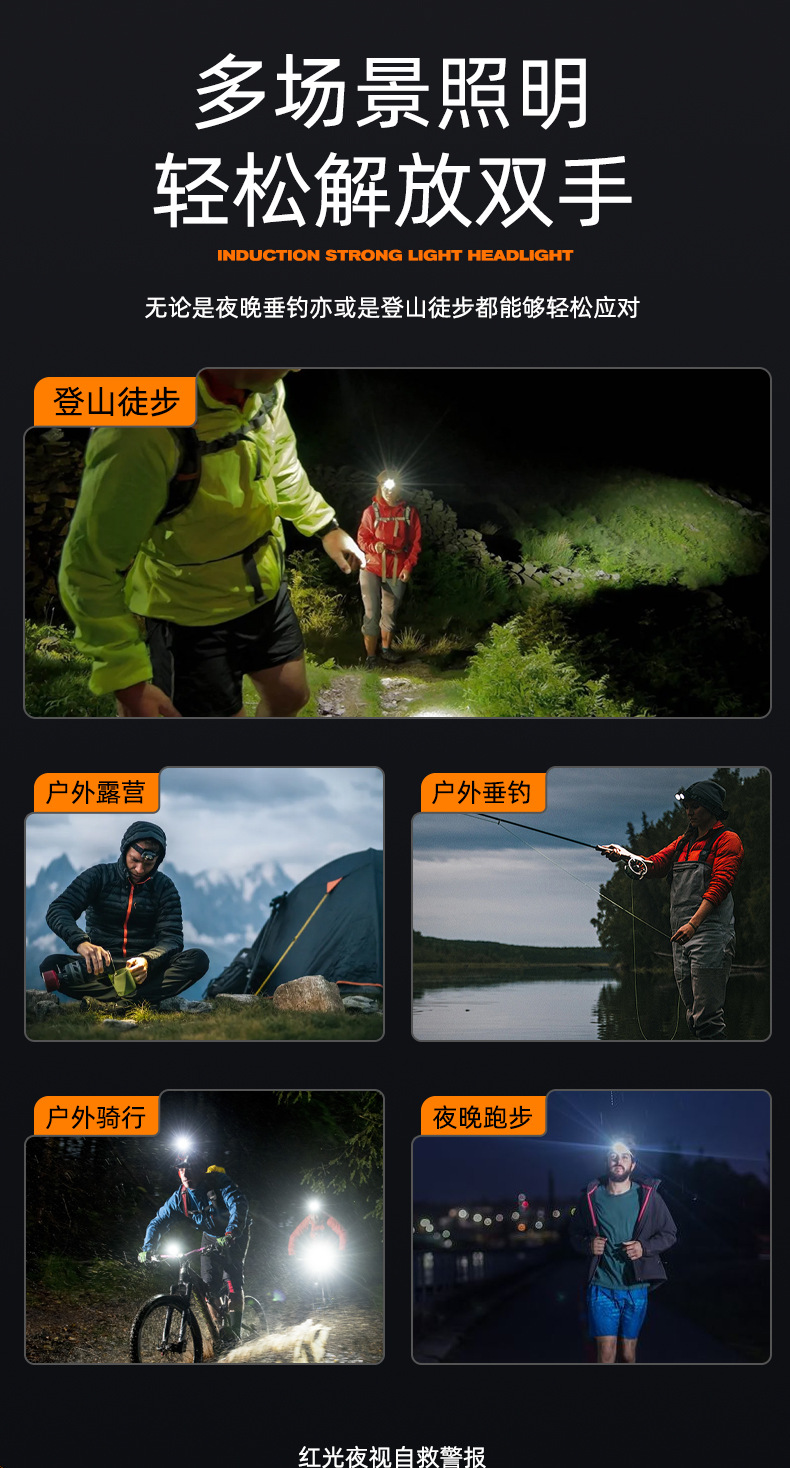강한 빛과 높은 루멘을 갖춘 헤드라이트, 야간 낚시에 사용할 수 있는 매우 밝은 필드 라이트, 특수 장수명 리튬 배터리 센서 라이트