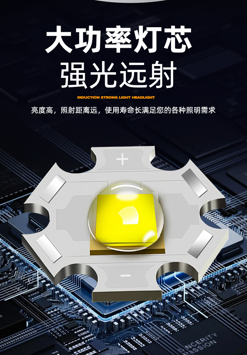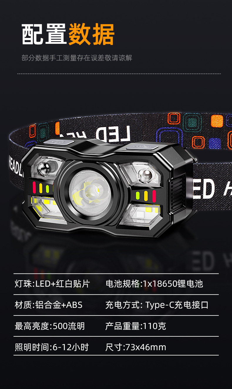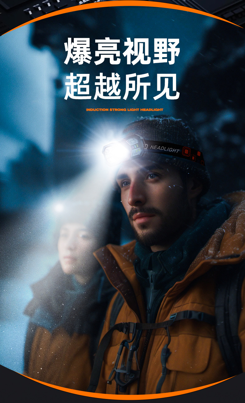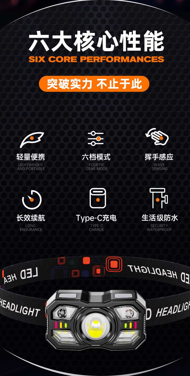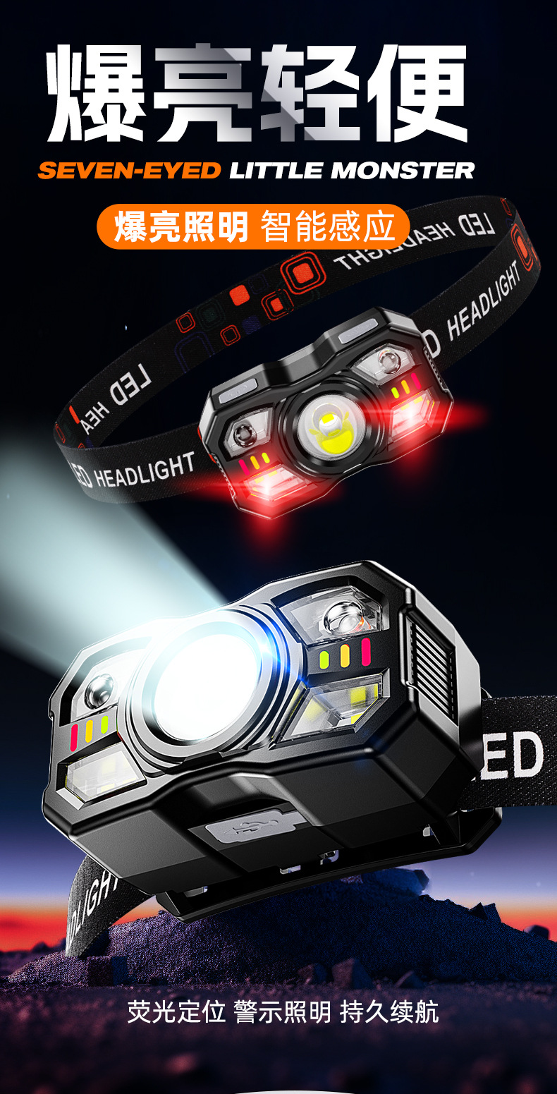 강한 빛과 높은 루멘을 갖춘 헤드라이트, 야간 낚시에 사용할 수 있는 매우 밝은 필드 라이트, 특수 장수명 리튬 배터리 센서 라이트