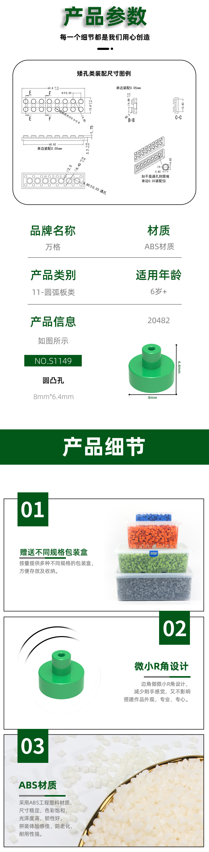 Wange diy 작은 입자 국내 빌딩 블록 20482 조립 부품과 호환 가능 원형 볼록 구멍 과학 및 교육 장난감 청하이 도매스토어 가기