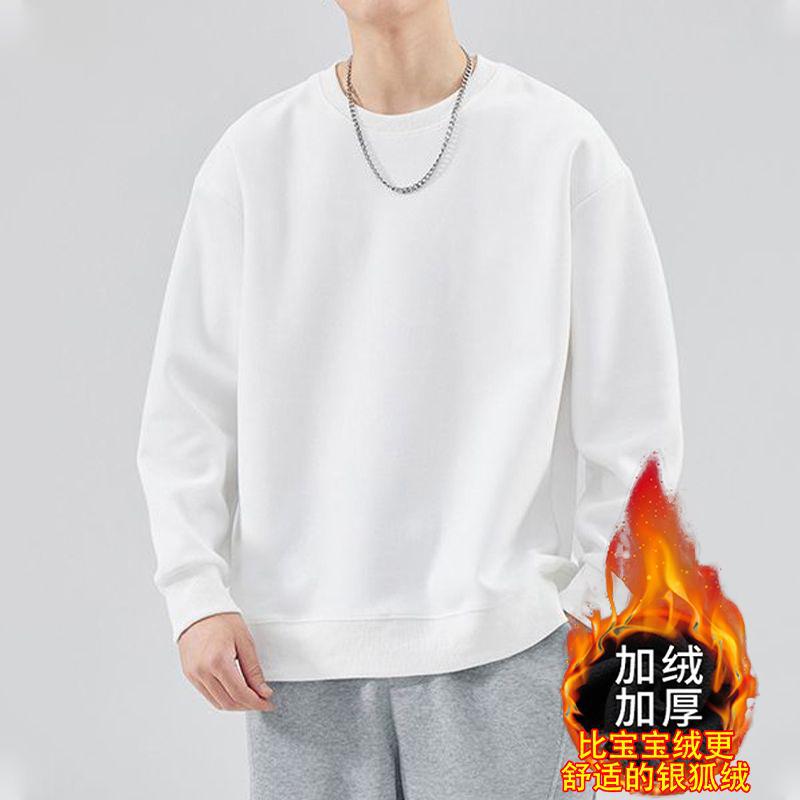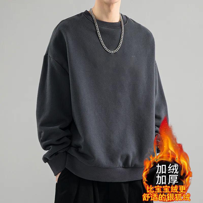 2024 가을과 겨울 새로운 긴 소매 크루 넥 티셔츠 세련된 올 매치 기모 두꺼운 스웨터베이스 셔츠