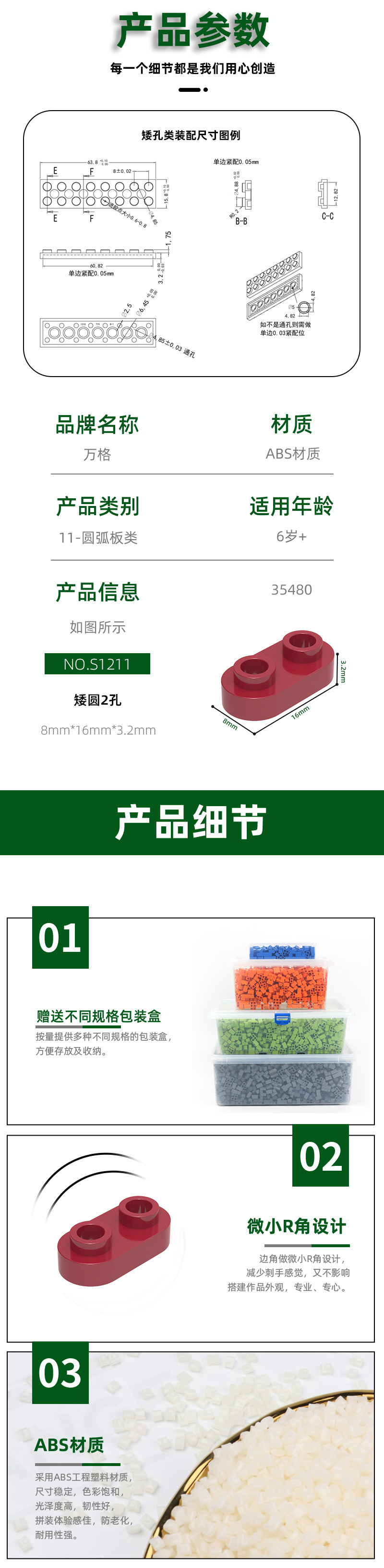 완게 크로스보더 장난감 소형 블록 35480 조립 부품 낮은 원형 2홀 크로스보더 도매 MOC 맞춤 제작스토어 가기