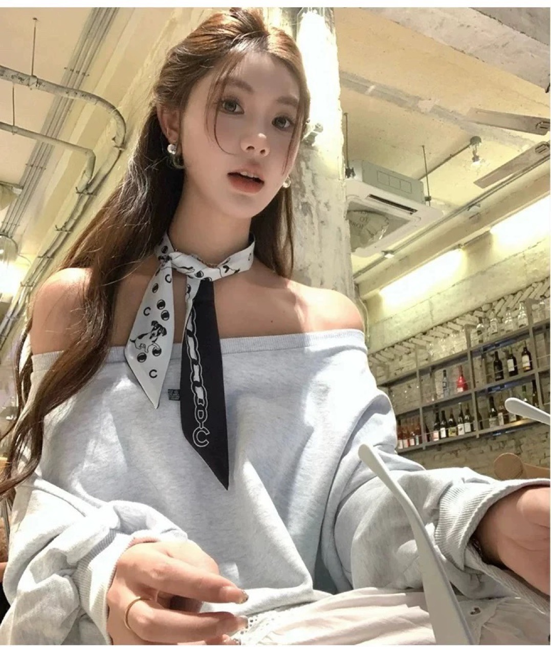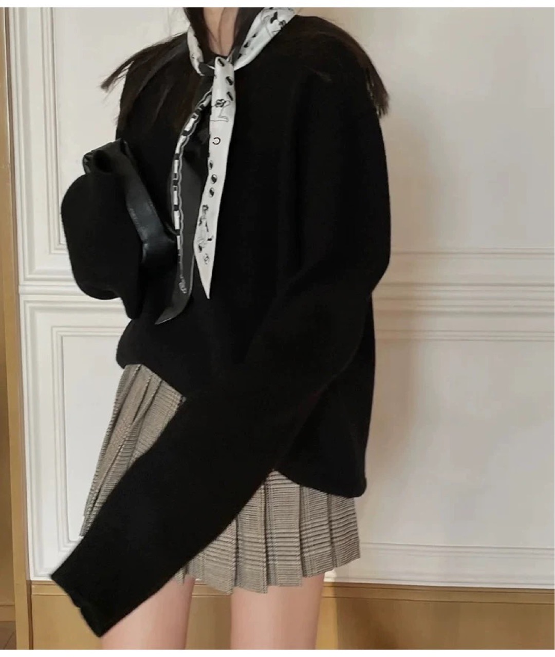 인터넷 연예인 같은 스타일 흑백 스카프 2024 가을과 겨울 우아한 올 매치 리본 스카프 프랑스 레트로 헤어 벨트 리본 스카프스토어 가기
