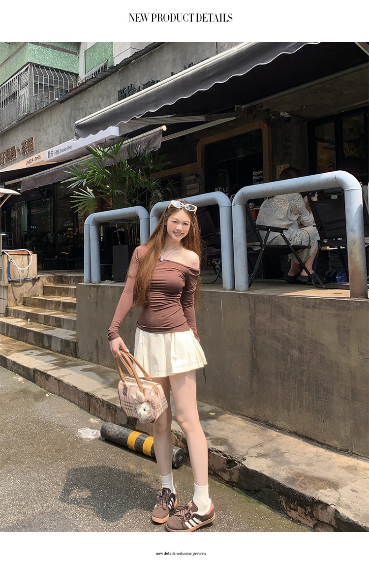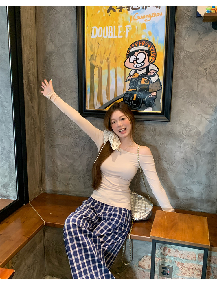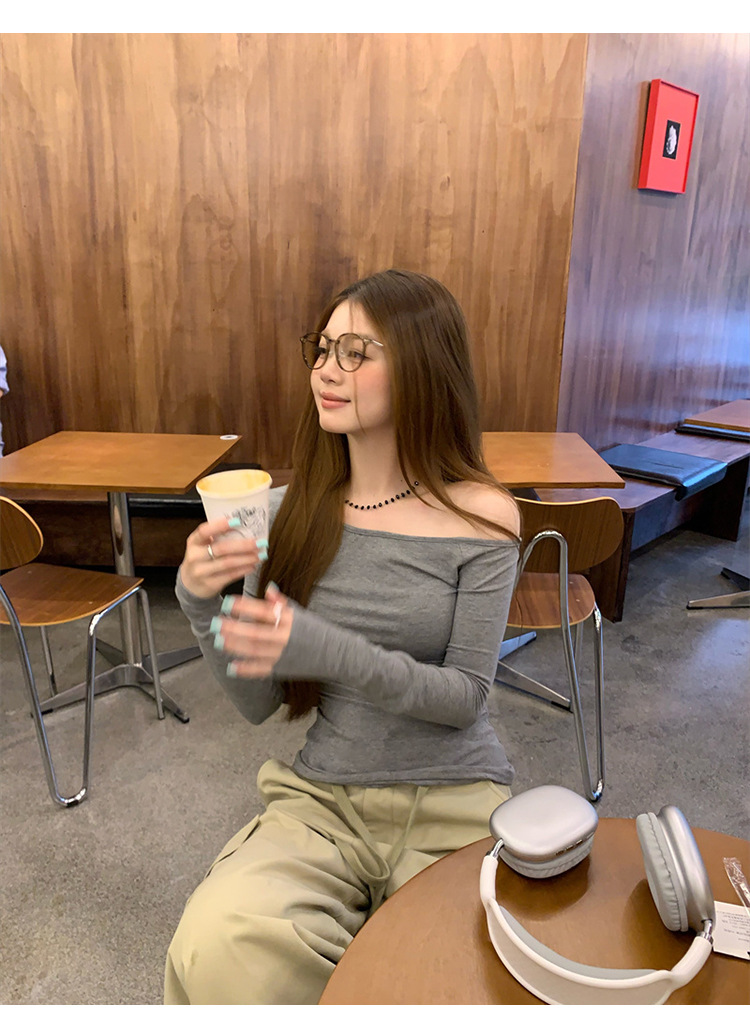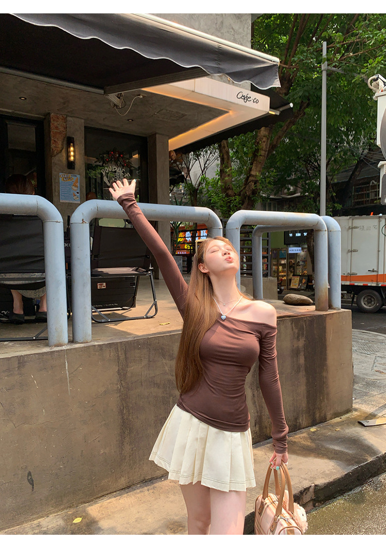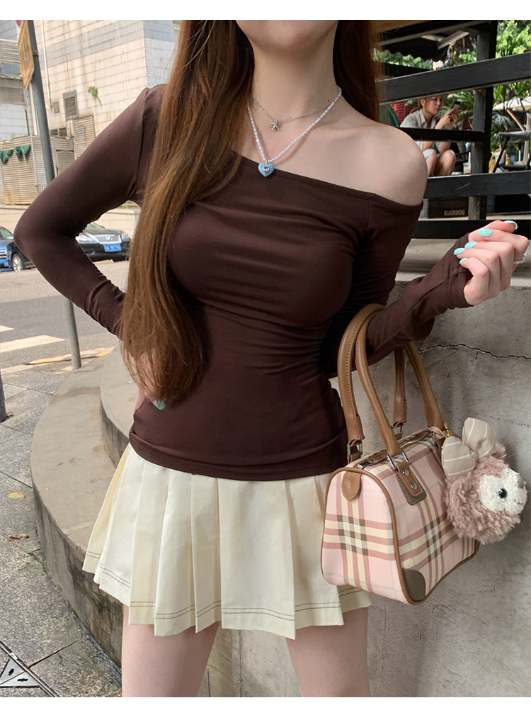 纯欲辣妹修身显瘦露肩长袖T恤女装早秋小众设计感百搭打底衫上衣