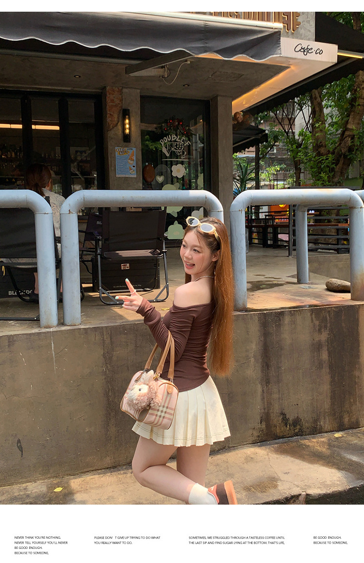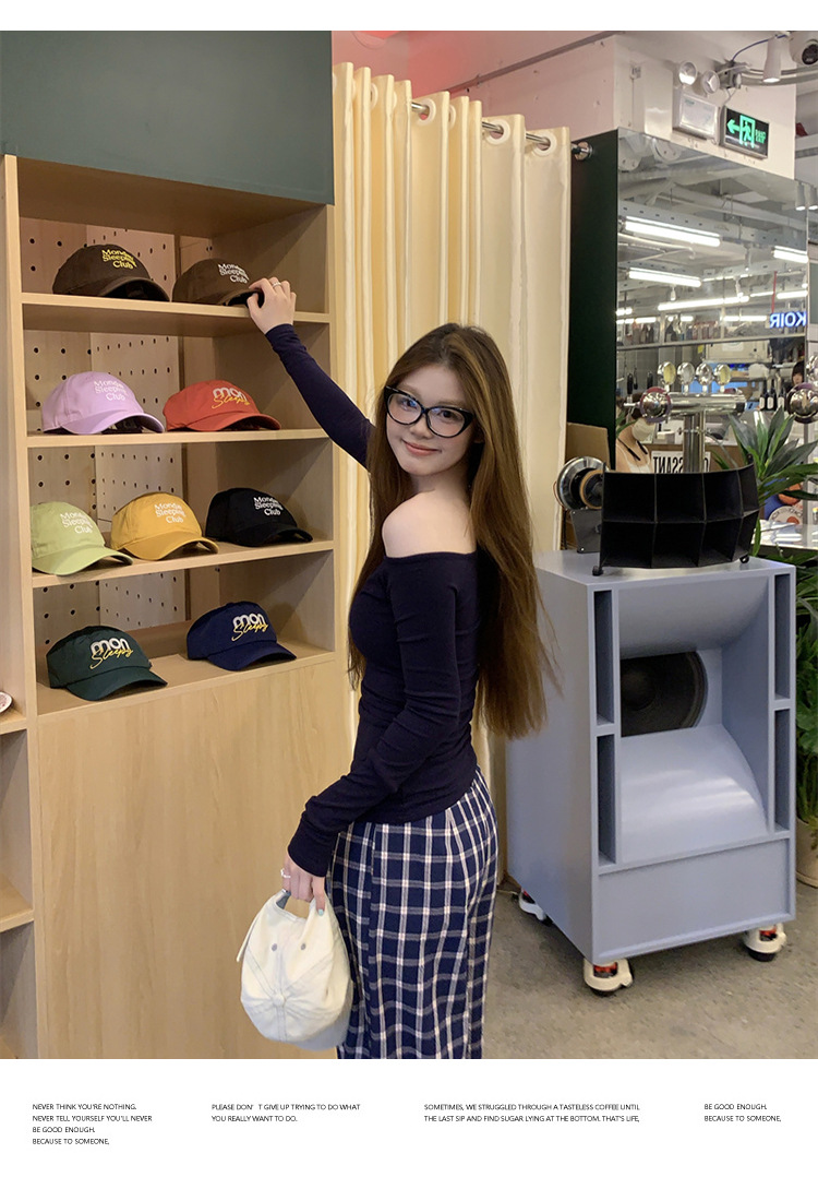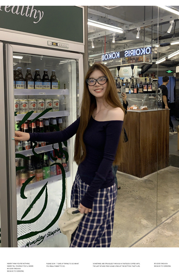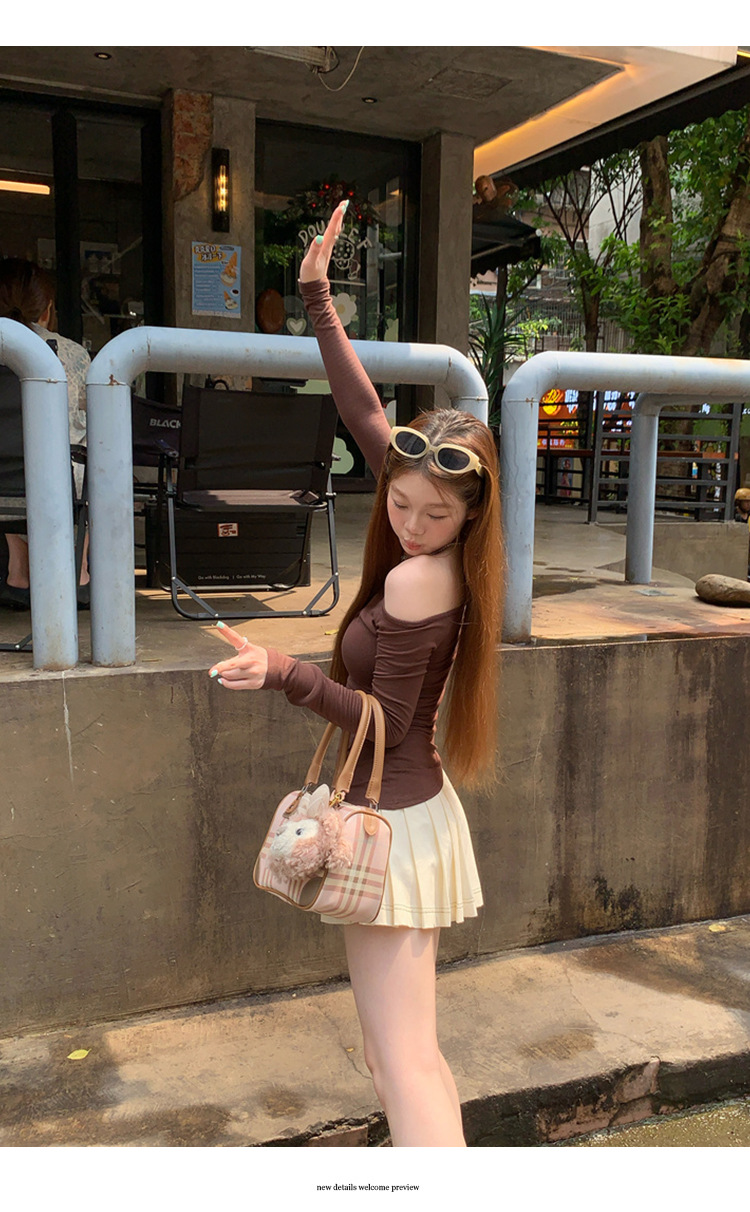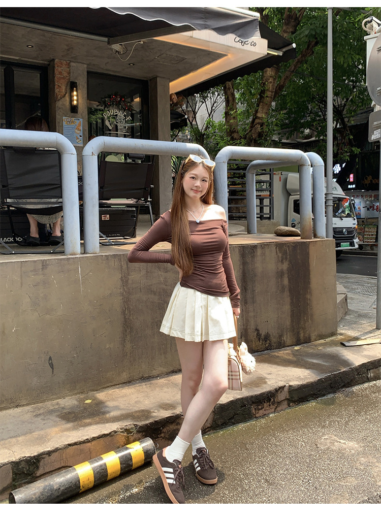 纯欲辣妹修身显瘦露肩长袖T恤女装早秋小众设计感百搭打底衫上衣