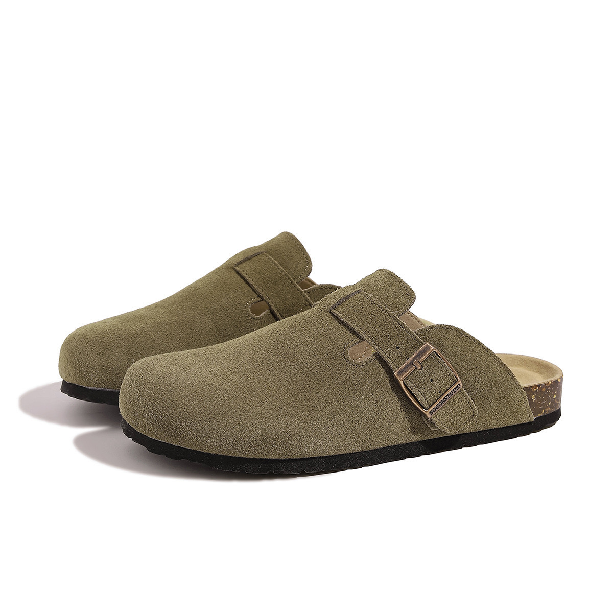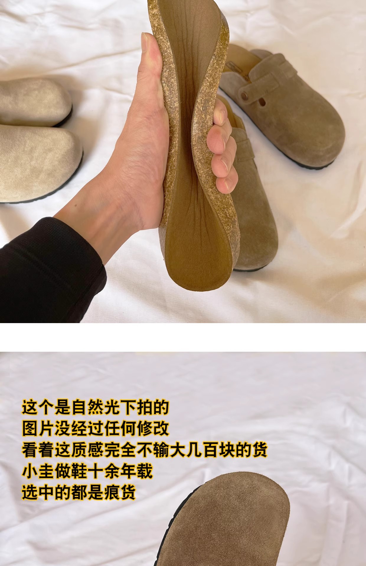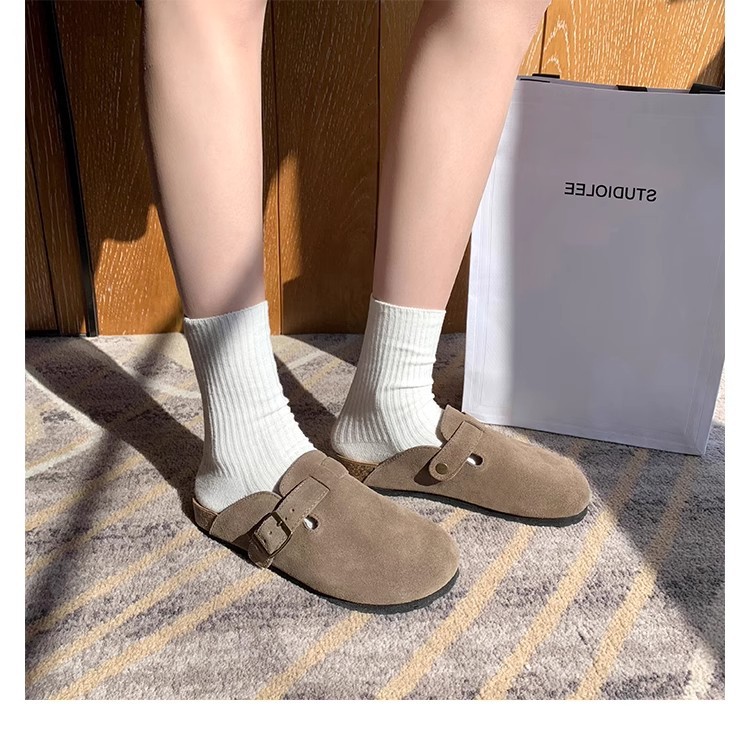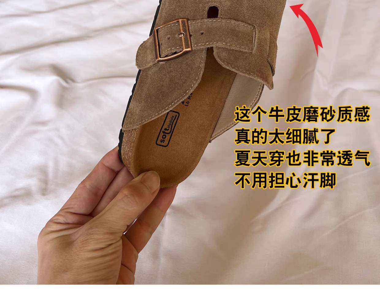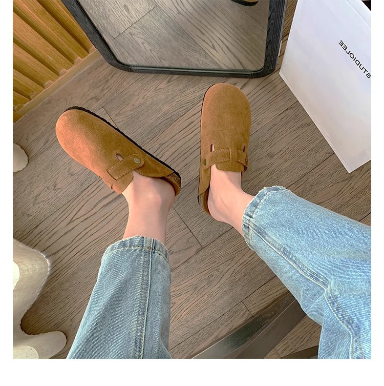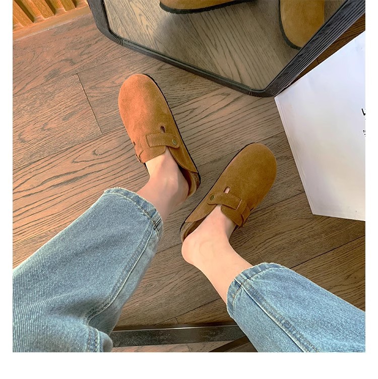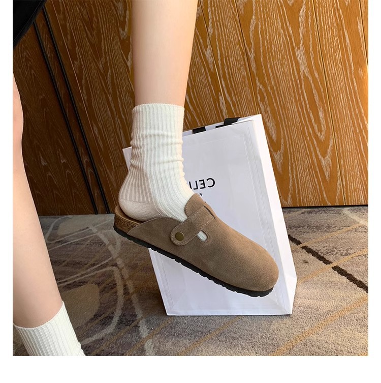 가죽 업그레이드 ~ 목 켄 2025 신년 여성 슬리퍼 코르크 플랫 낚시 바오터우 하프 토큰 여성용 신발스토어 가기