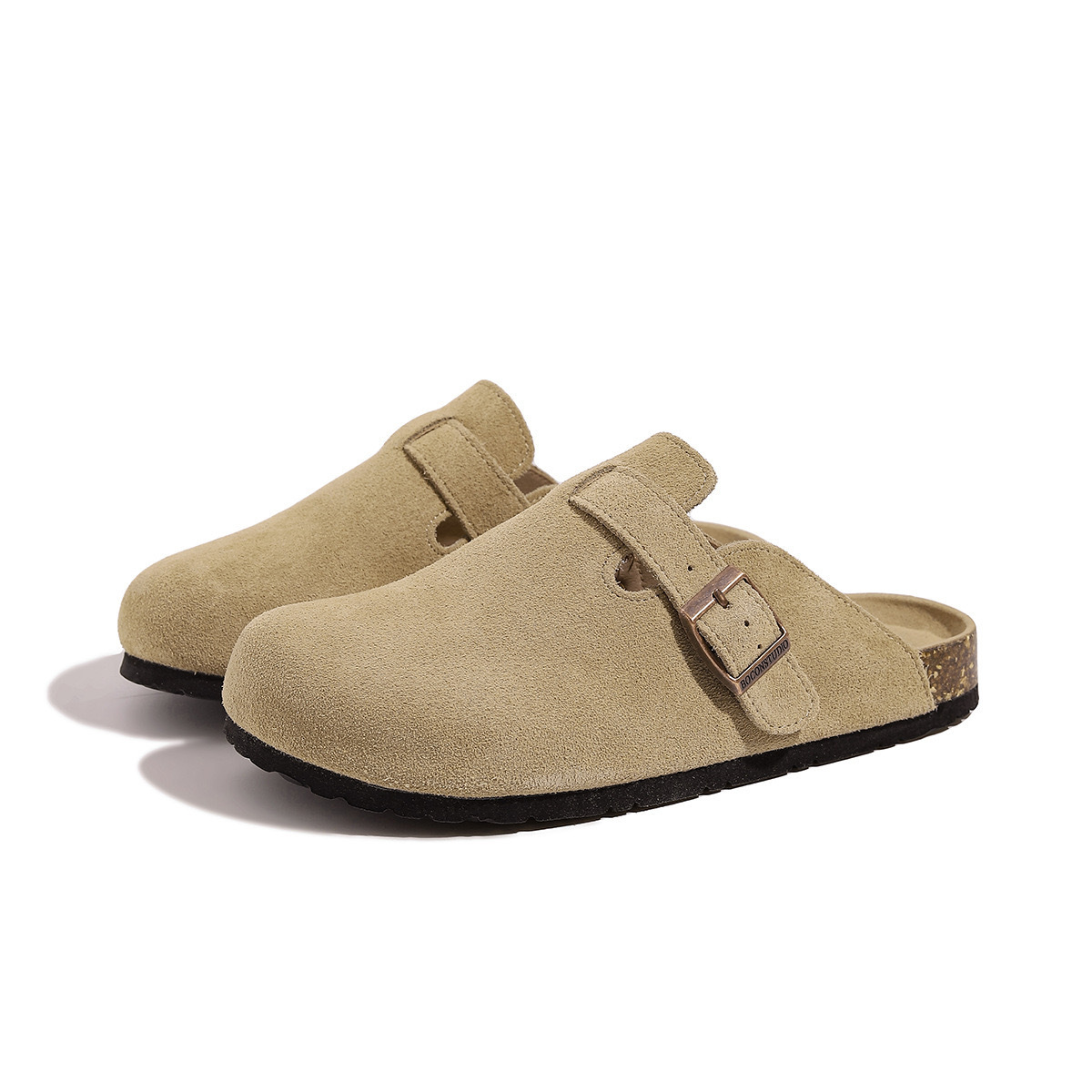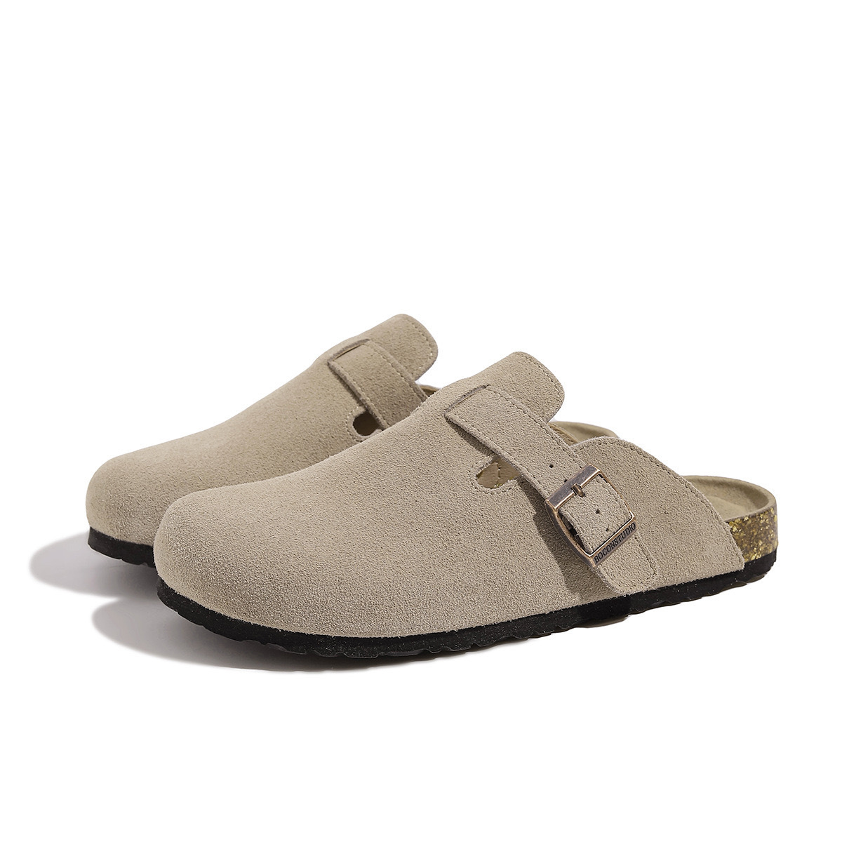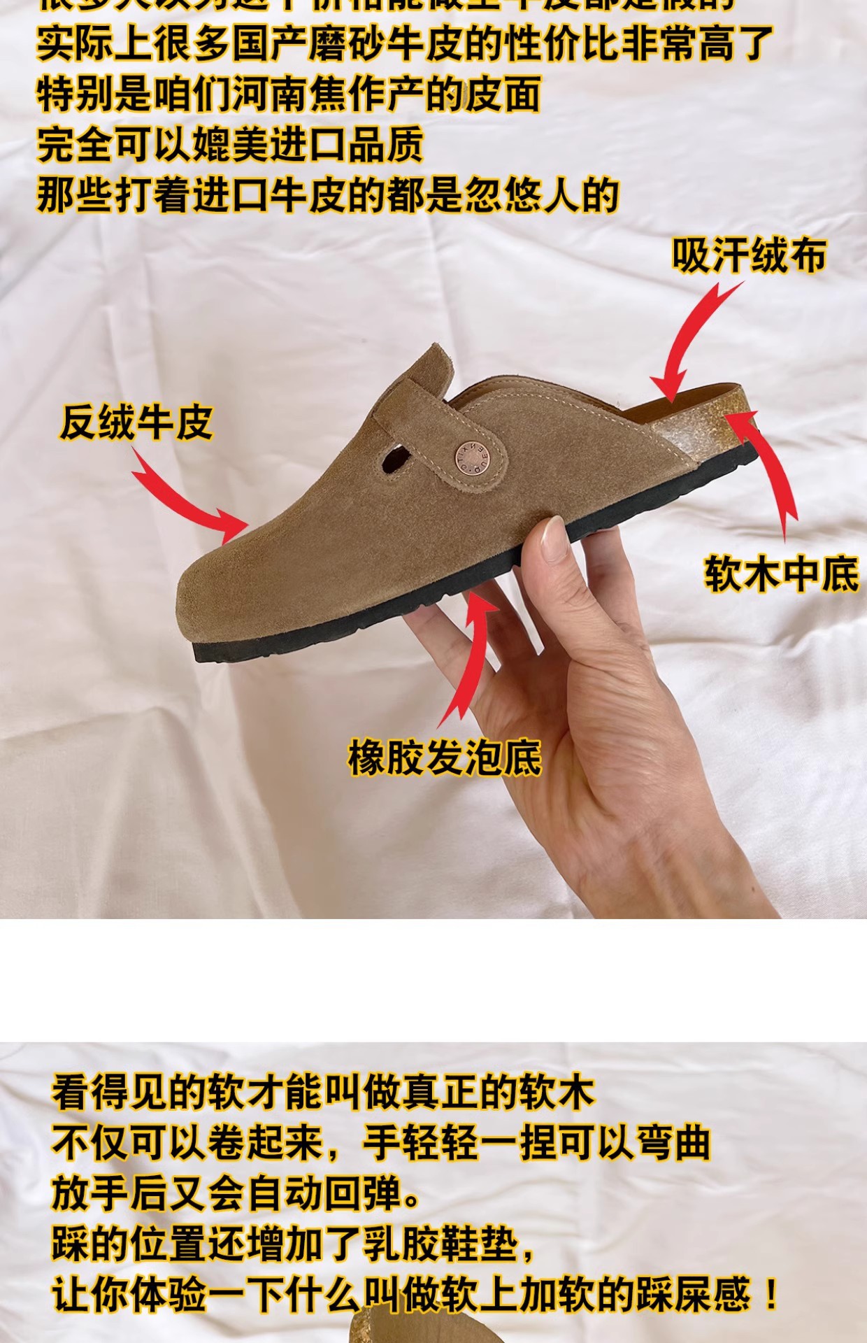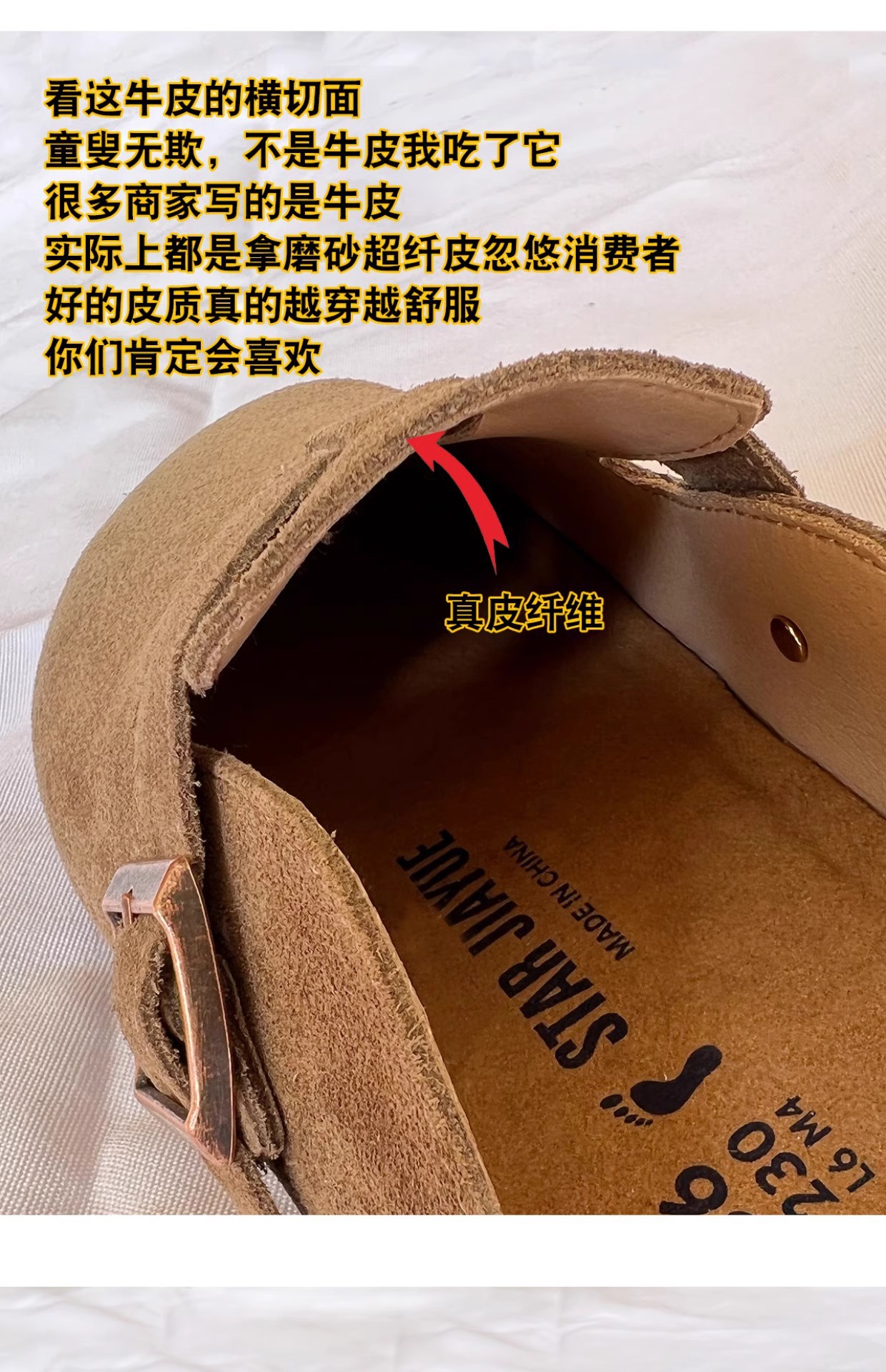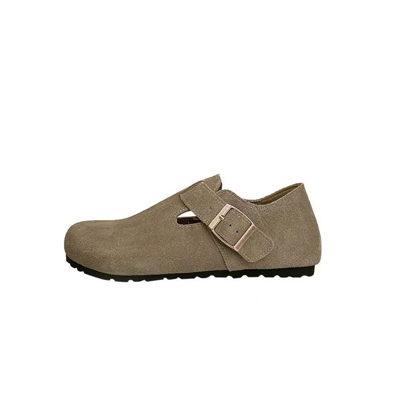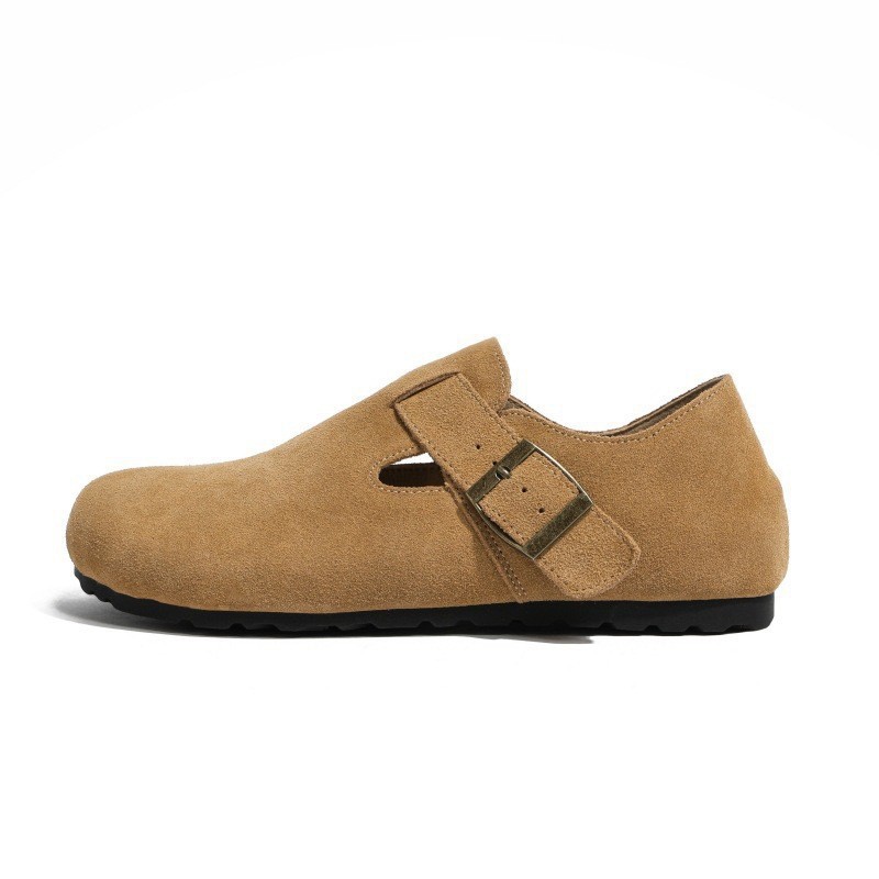 가죽 업그레이드 ~ 목 켄 2025 신년 여성 슬리퍼 코르크 플랫 낚시 바오터우 하프 토큰 여성용 신발스토어 가기