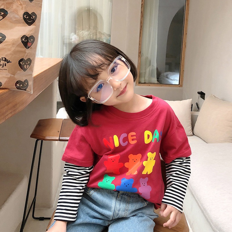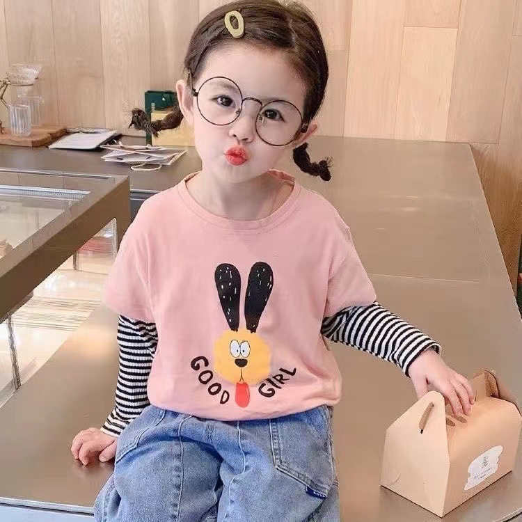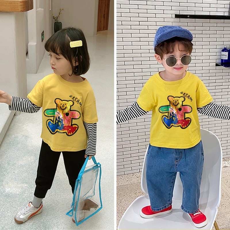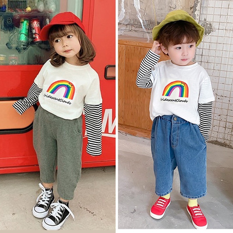 봄과 가을 새로운 한국 스타일 남녀 중소 어린이 팬시 2 피스 아동복 긴팔 티셔츠베이스 셔츠