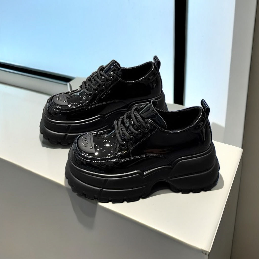 작은 키도 잘어울리는 키높이 페이턴트 가죽 로퍼 여성용 2025 봄 영국풍 플랫폼 가죽 신발 레트로