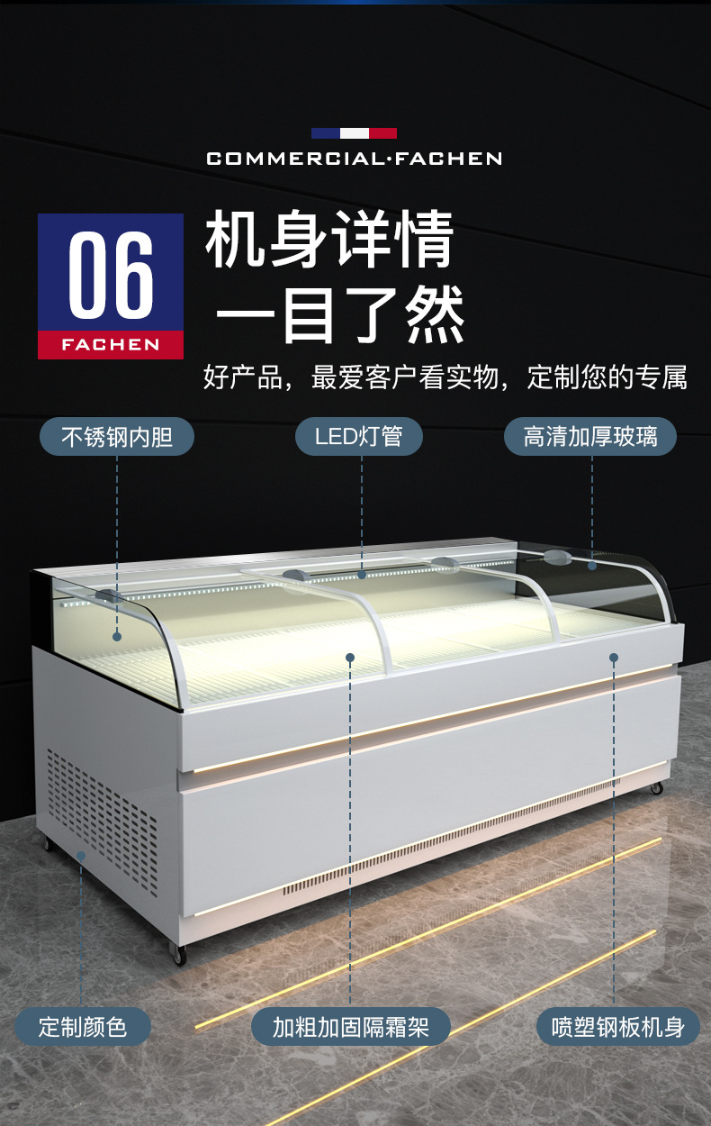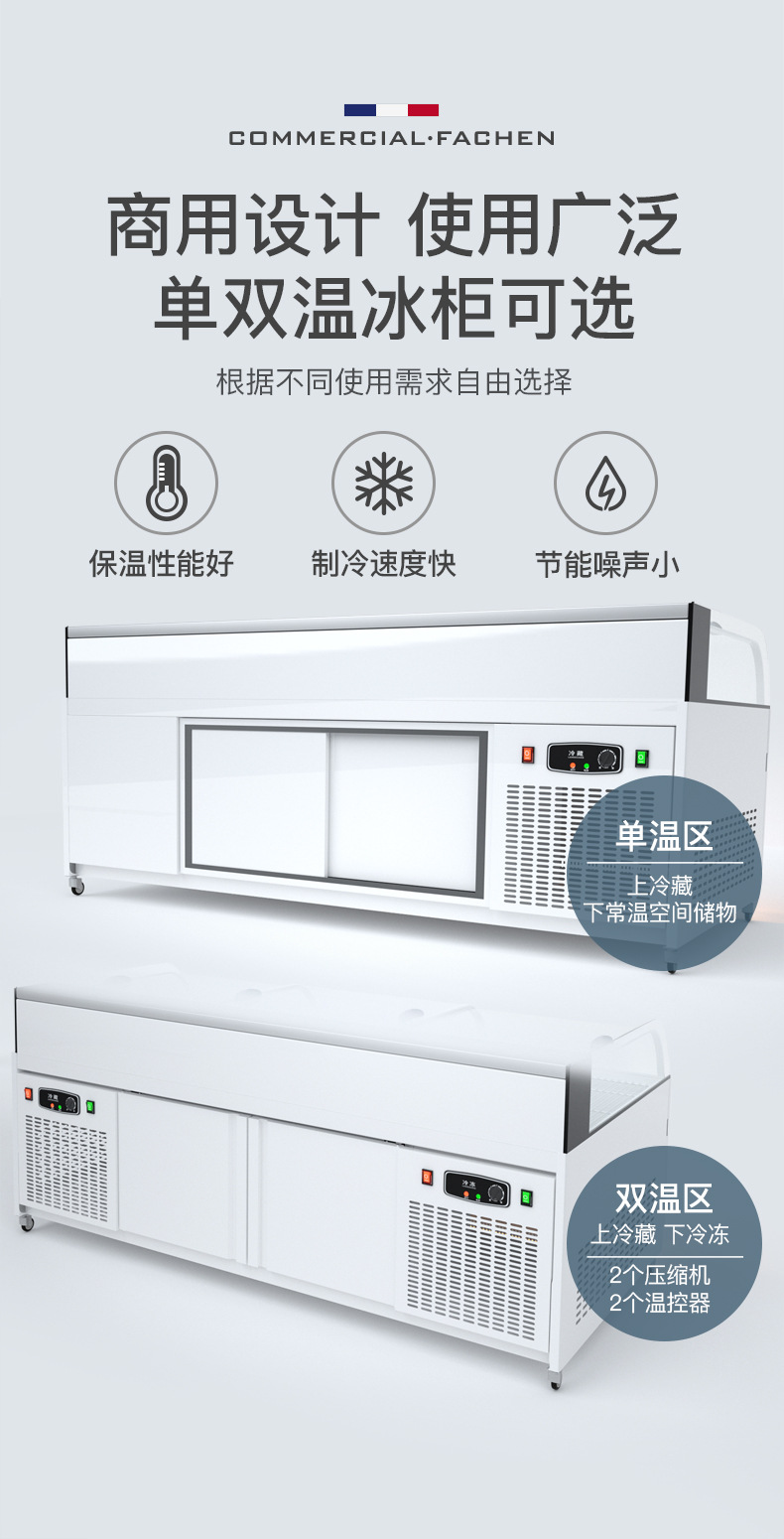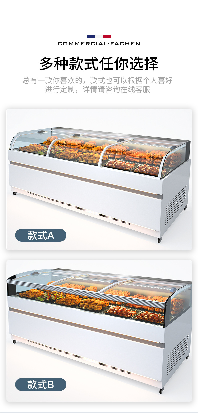 Fachen 요리 식품 디스플레이 캐비닛 냉장 절인 요리 과일 낚시 신선한 내각 돼지 고기 오리 목 캐비닛 이중 온도 상업용 신선한 고기 캐비닛