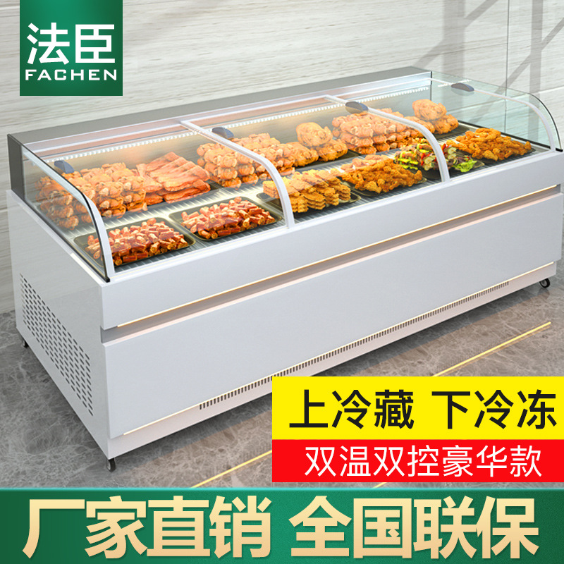 Fachen 요리 식품 디스플레이 캐비닛 냉장 절인 요리 과일 낚시 신선한 내각 돼지 고기 오리 목 캐비닛 이중 온도 상업용 신선한 고기 캐비닛스토어 가기