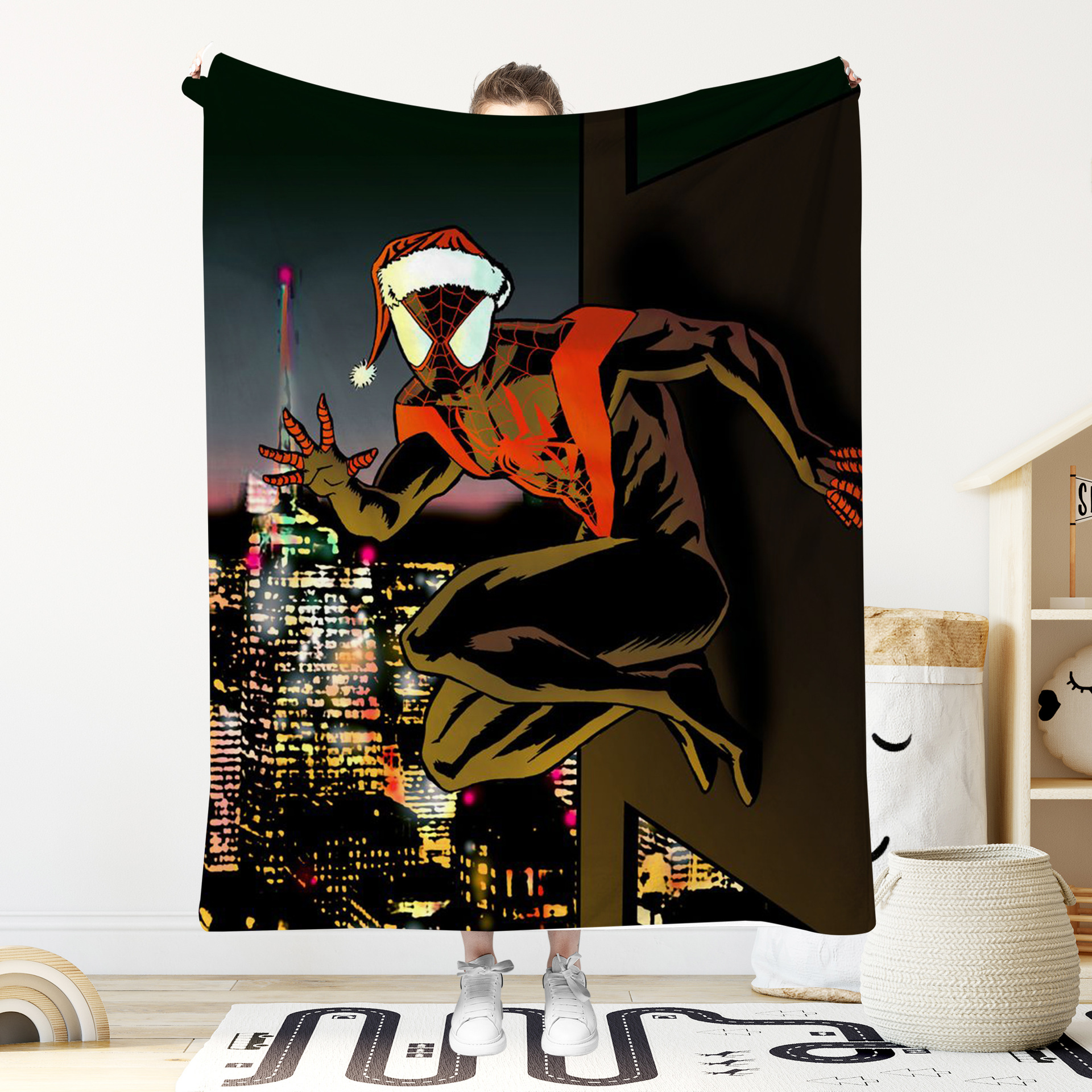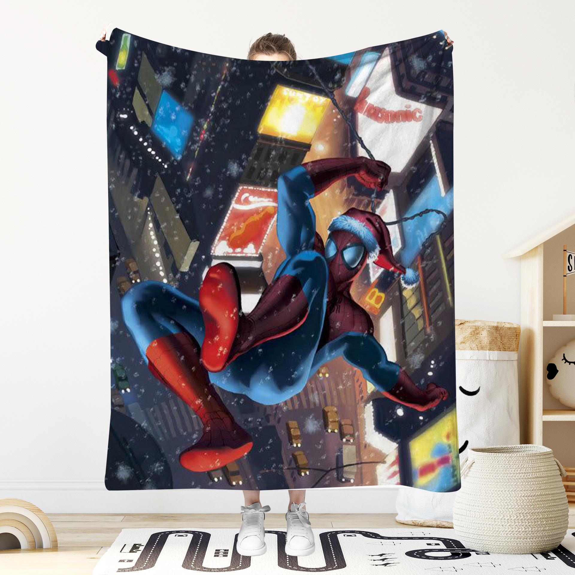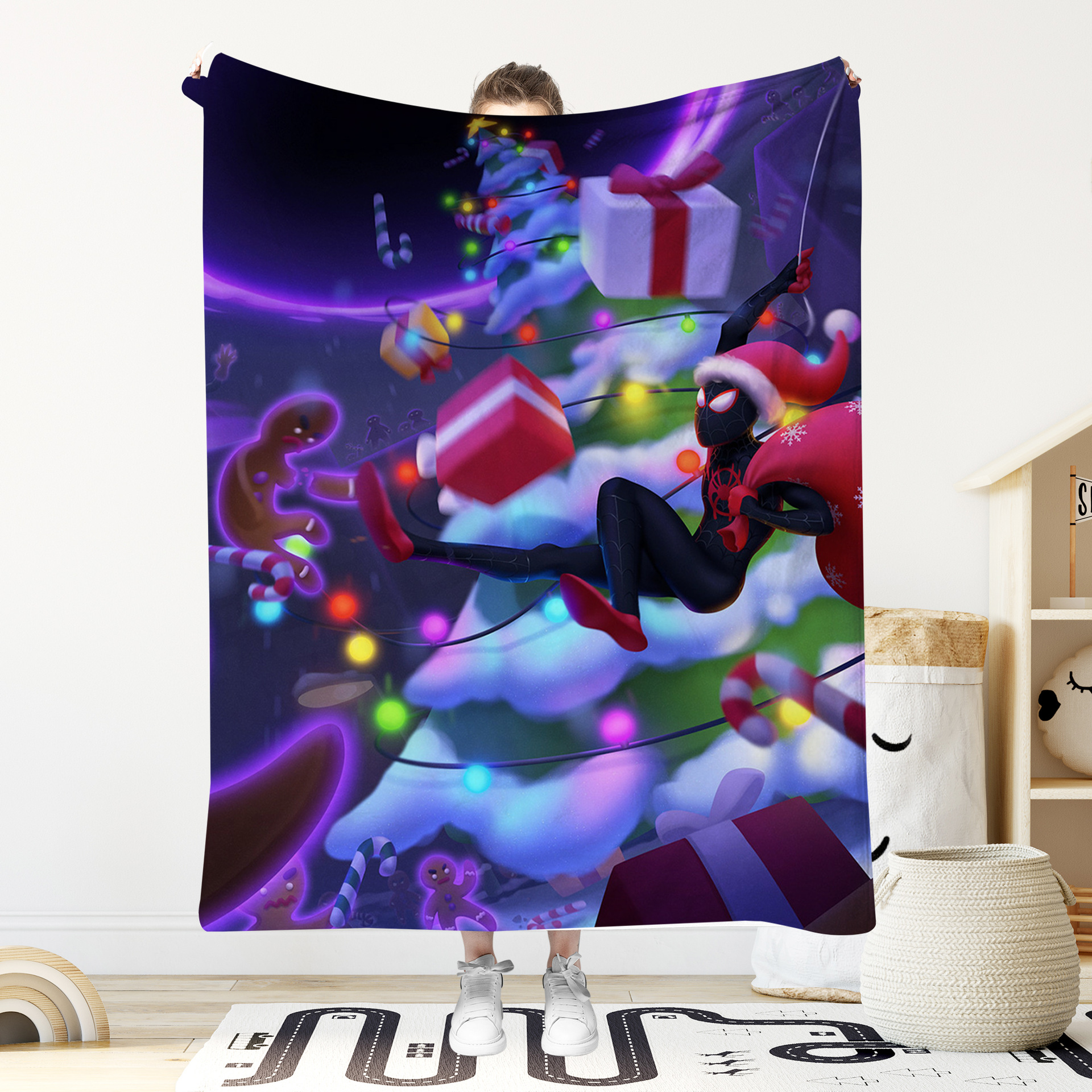 스파이더 맨 인쇄 담요 마블 시리즈 애니메이션 크리스마스 스파이더 맨 플란넬 담요 소파 담요 크리스마스 선물스토어 가기