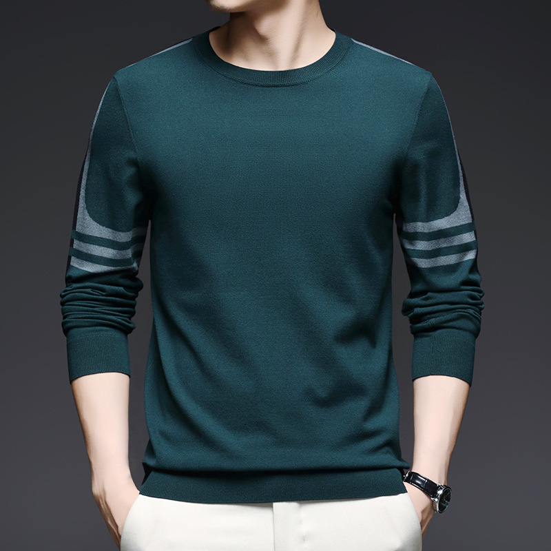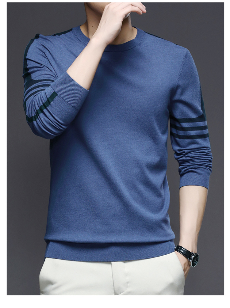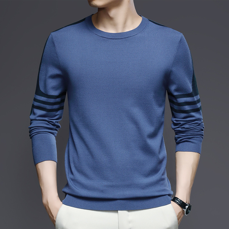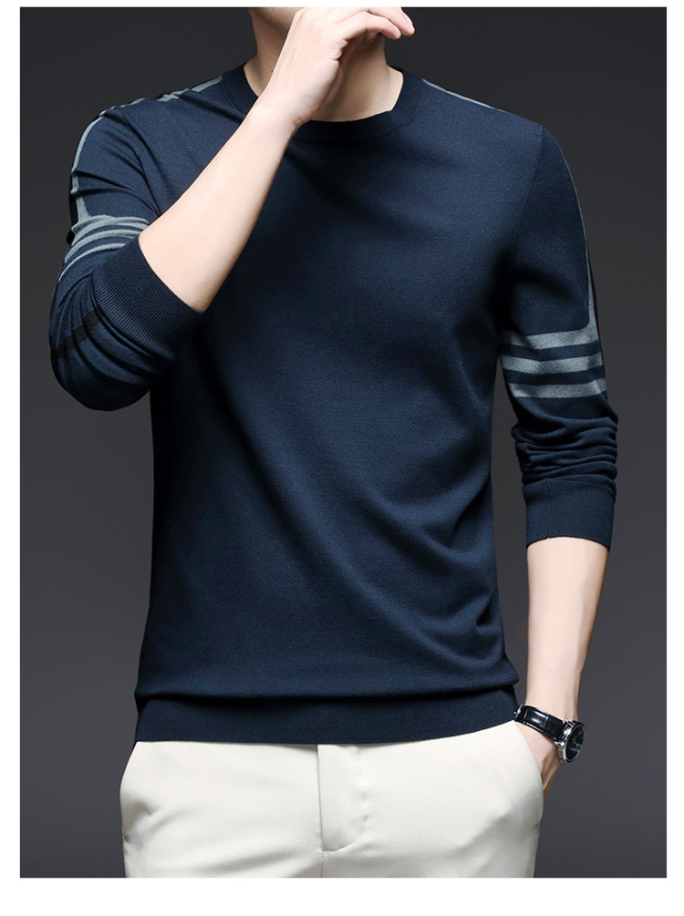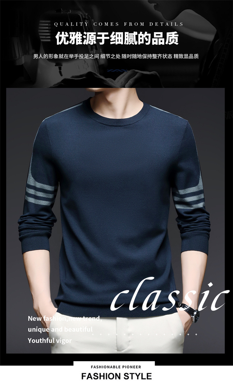 2024 가을과 겨울 남성 초정밀 얇은 니트 스웨터베이스 셔츠 청소년 하이 엔드 라운드 넥 패션 스웨터스토어 가기