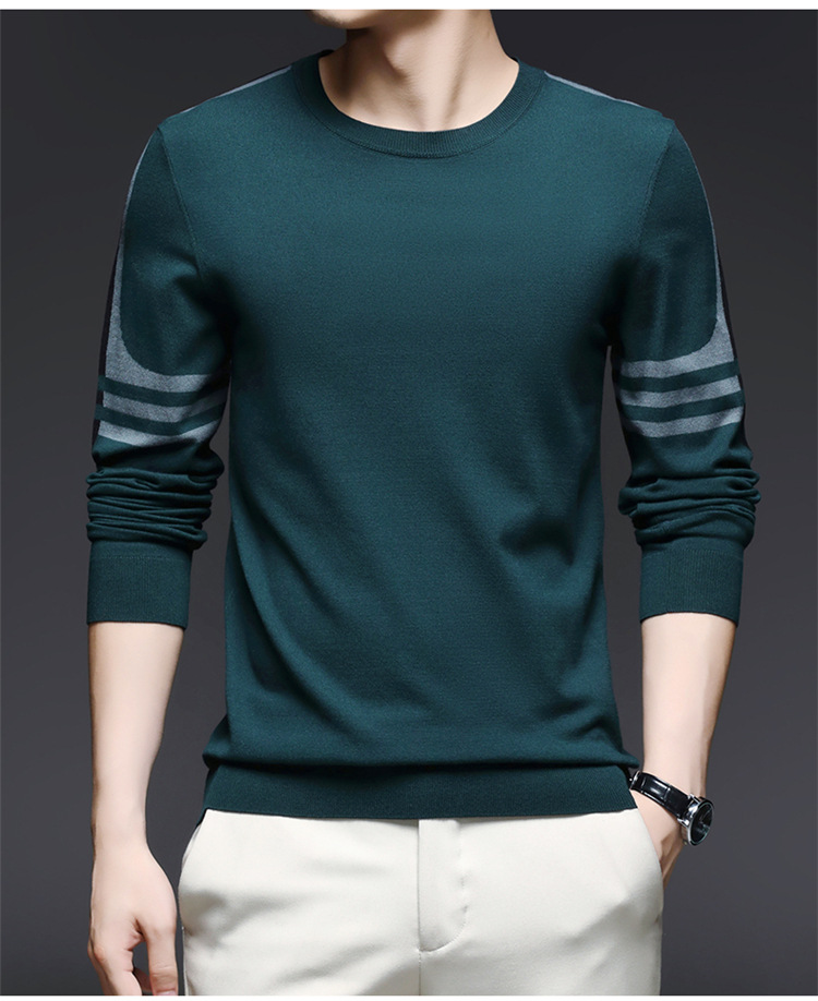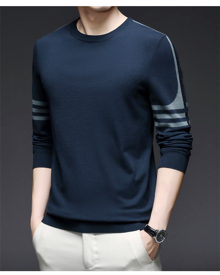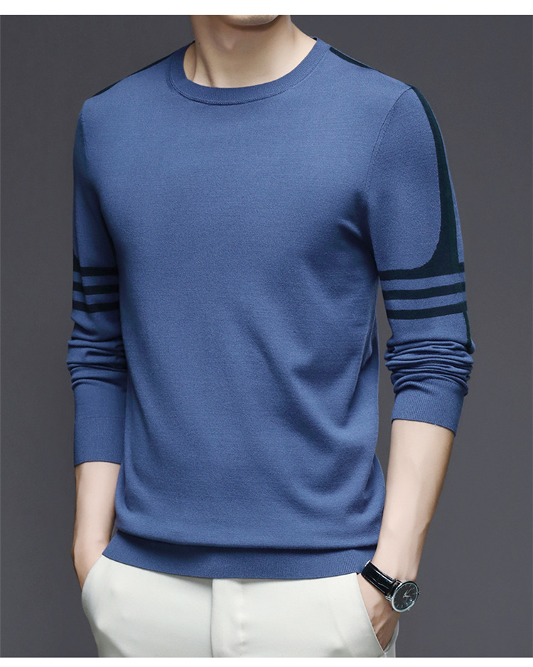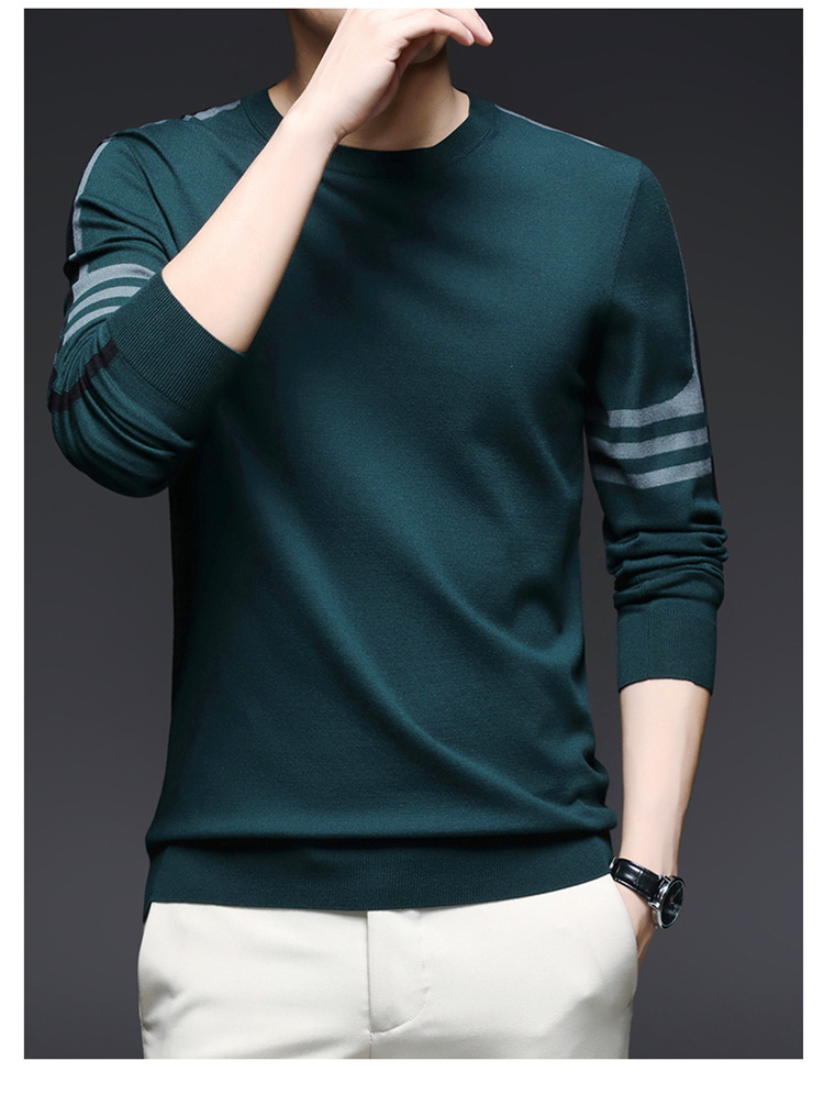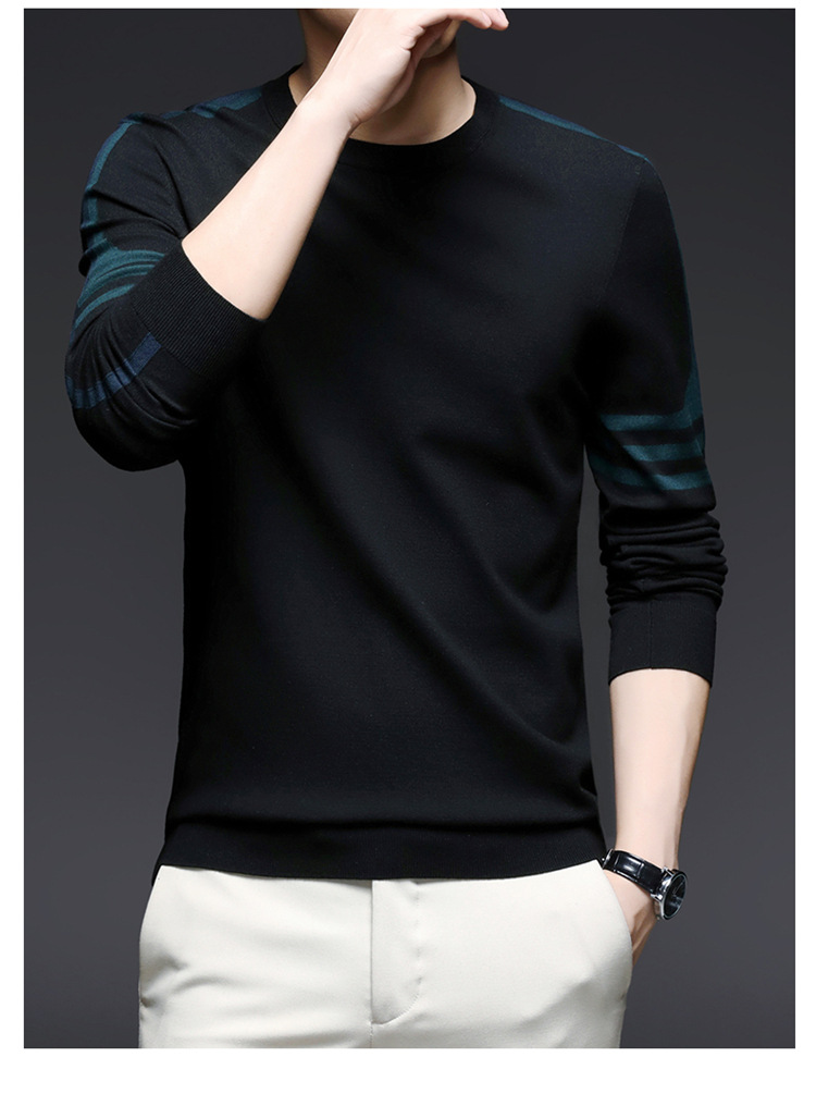 2024 가을과 겨울 남성 초정밀 얇은 니트 스웨터베이스 셔츠 청소년 하이 엔드 라운드 넥 패션 스웨터스토어 가기