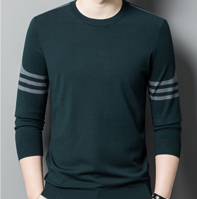 2024 가을과 겨울 남성 초정밀 얇은 니트 스웨터베이스 셔츠 청소년 하이 엔드 라운드 넥 패션 스웨터