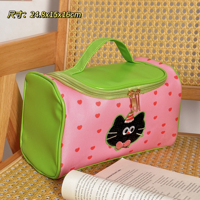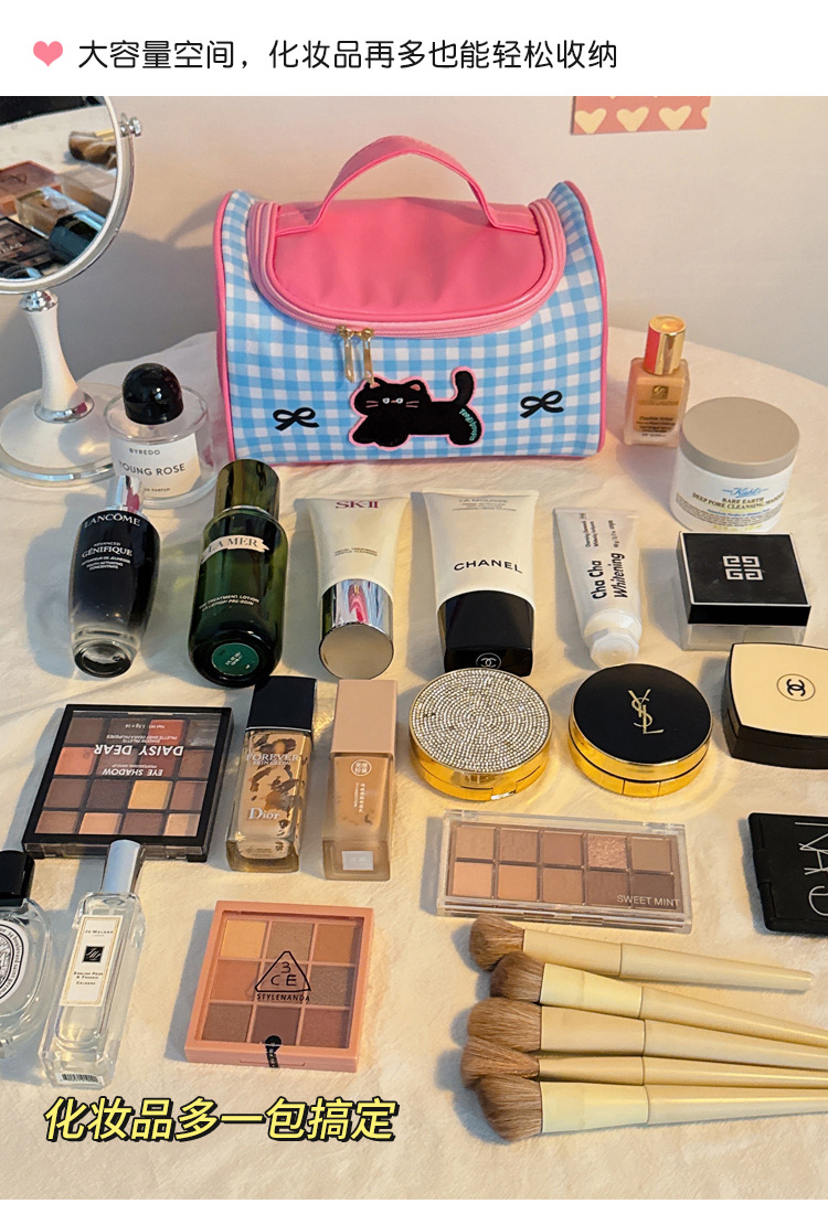 2024 새로운 귀여운 새끼 고양이 여성용 대용량 휴대용 여행 가방 보관 가방 화장품 가방