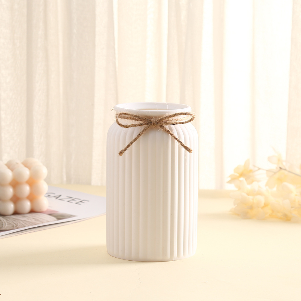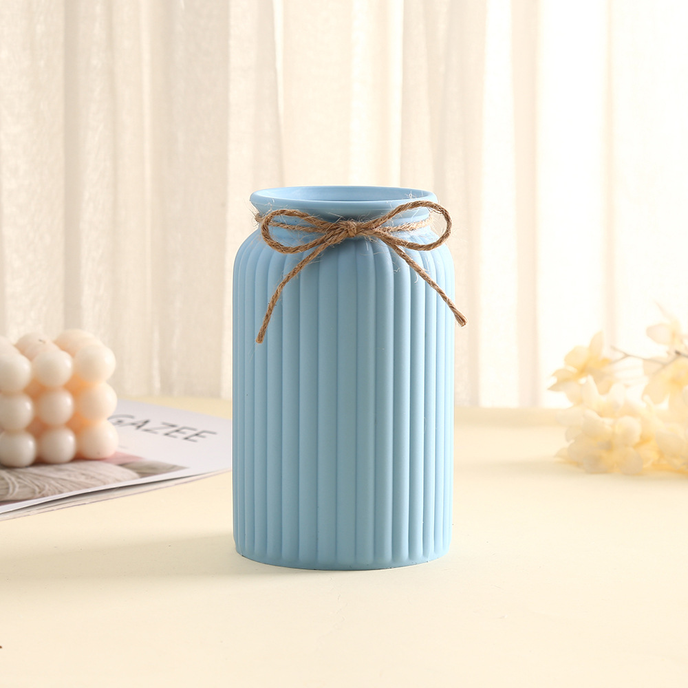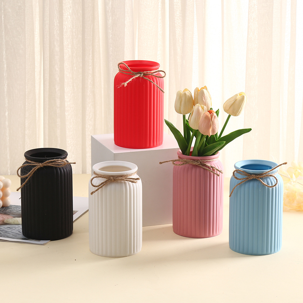 국경 간 뜨거운 판매 모조 도자기 플라스틱 꽃병 줄무늬 디자인 마카롱 컬러 꽃 냄비 데스크탑 거실 장식 장식품