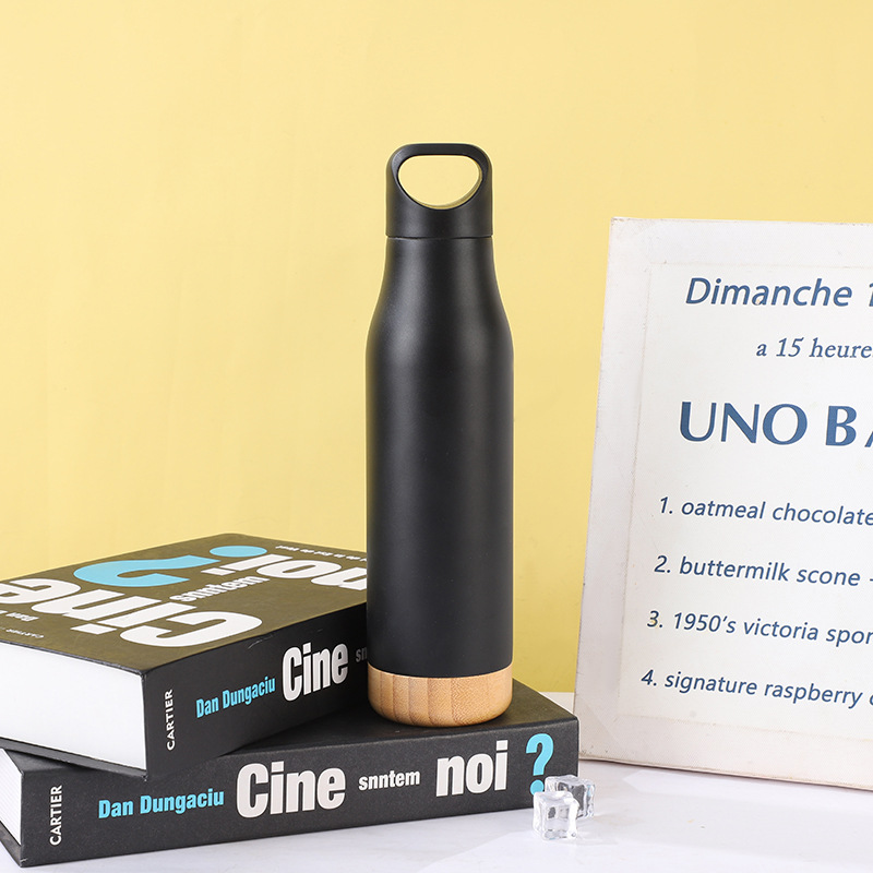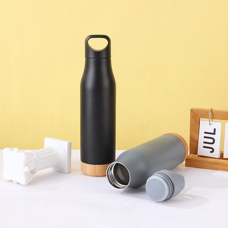 304 스테인레스 스틸 진공 더블 레이어 보온병 컵 대나무 나무 바닥 코르크 바닥 휴대용 스포츠 주전자 야외 하이킹 워터 컵