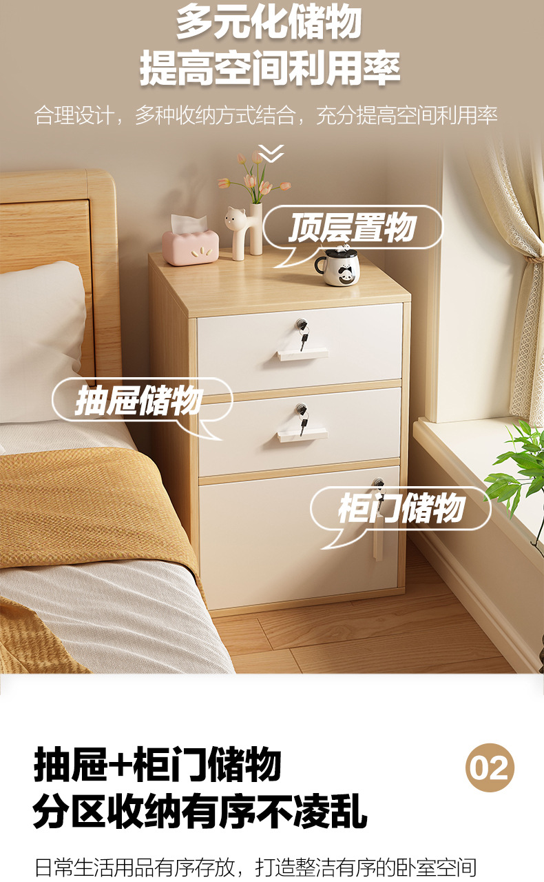 침대 옆 탁자, 심플한 침실용 가정용 수납장, 임대용 다층 침대 옆 간이 수납장 서랍장