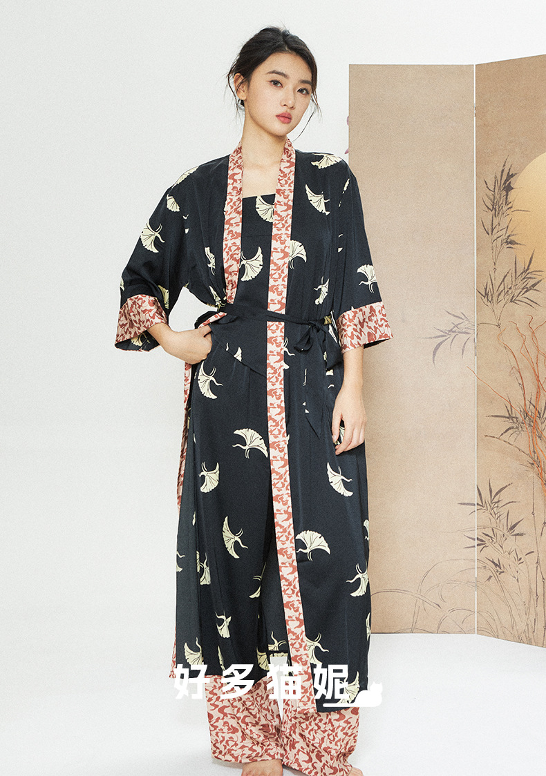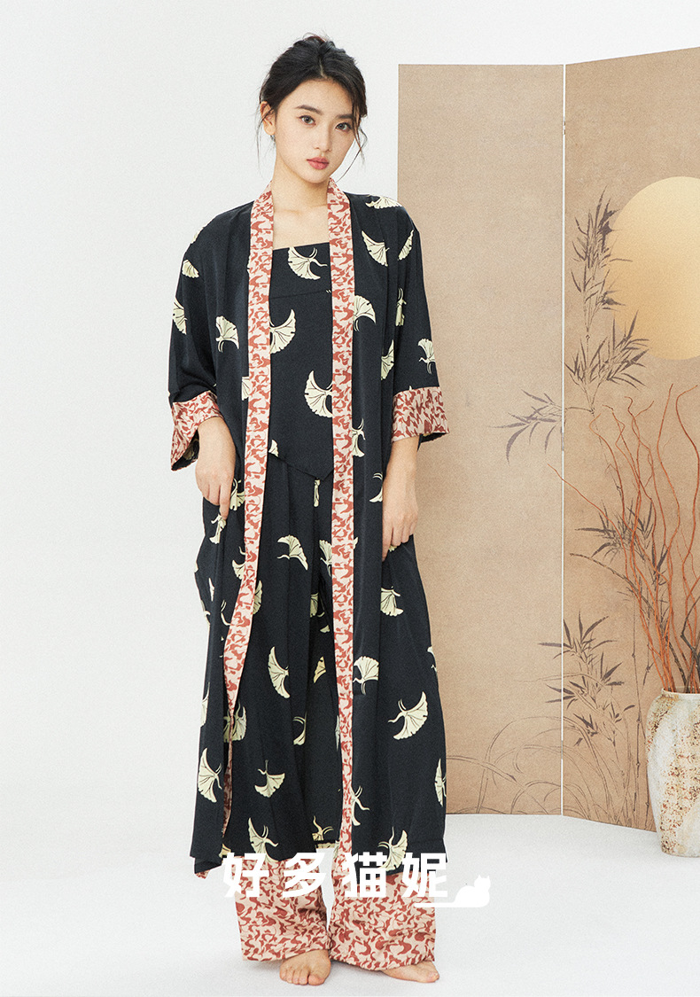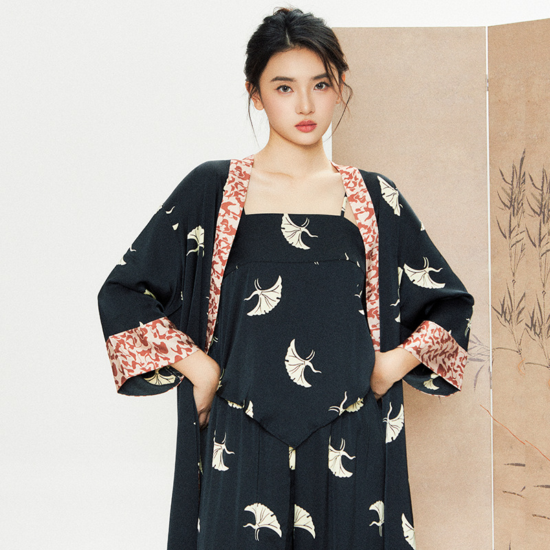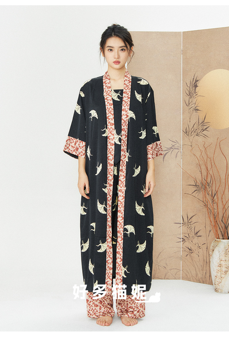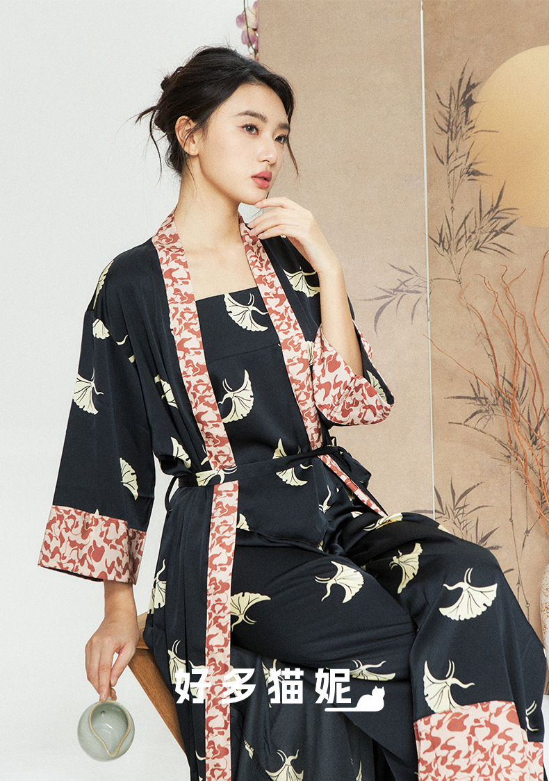 새로운 봄과 가을 여성 아이스 실크 파자마 새로운 중국 스타일 하이 엔드 나이트 가운 홈 의류 3 피스 세트 소스 도매