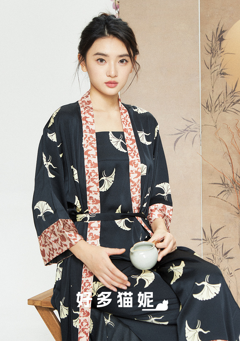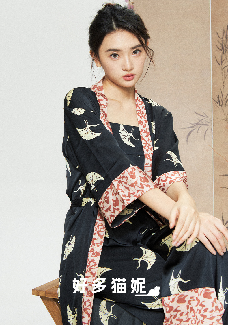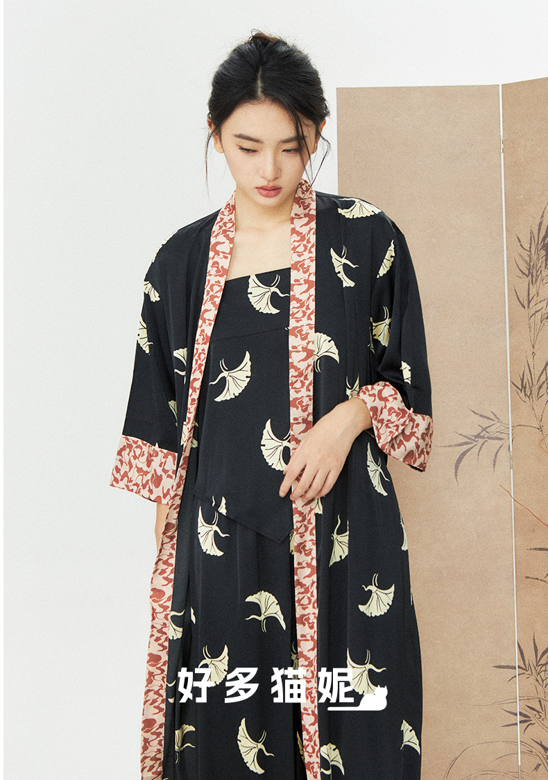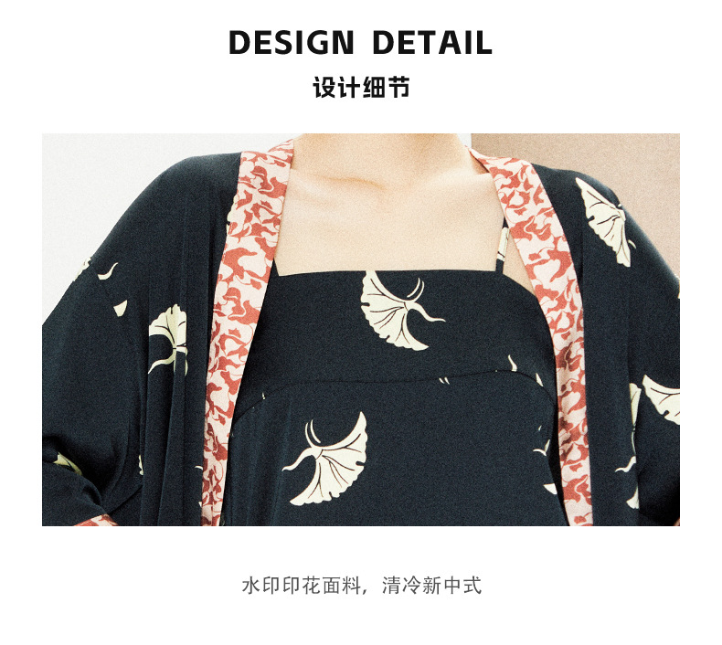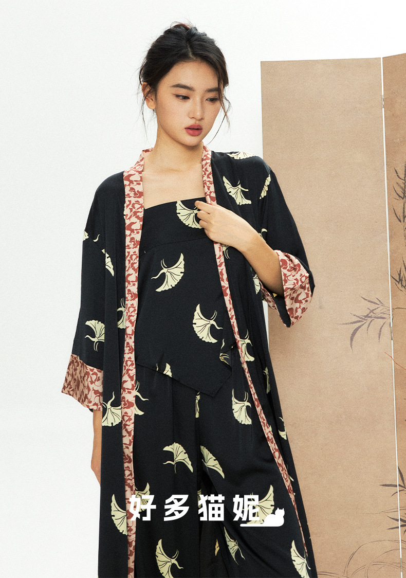 새로운 봄과 가을 여성 아이스 실크 파자마 새로운 중국 스타일 하이 엔드 나이트 가운 홈 의류 3 피스 세트 소스 도매