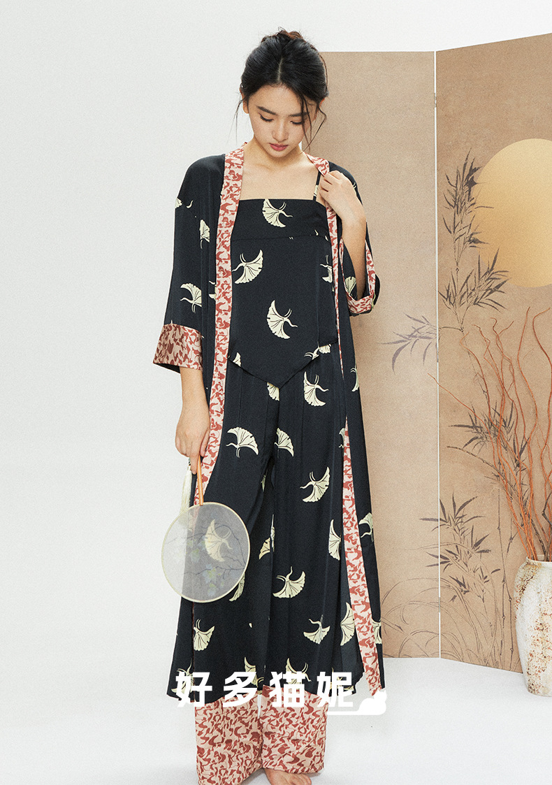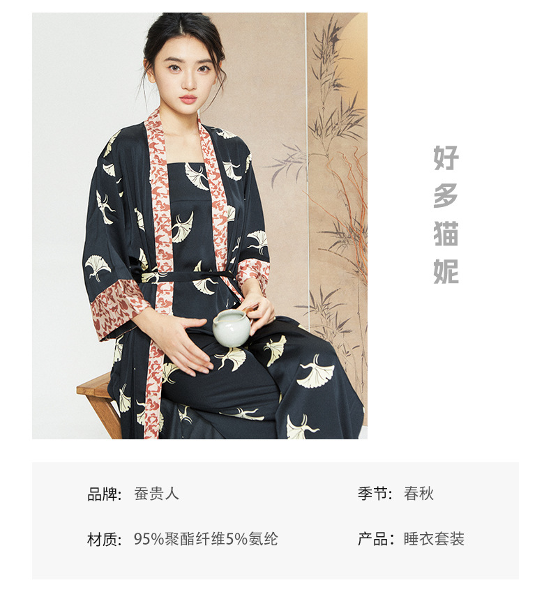 새로운 봄과 가을 여성 아이스 실크 파자마 새로운 중국 스타일 하이 엔드 나이트 가운 홈 의류 3 피스 세트 소스 도매스토어 가기