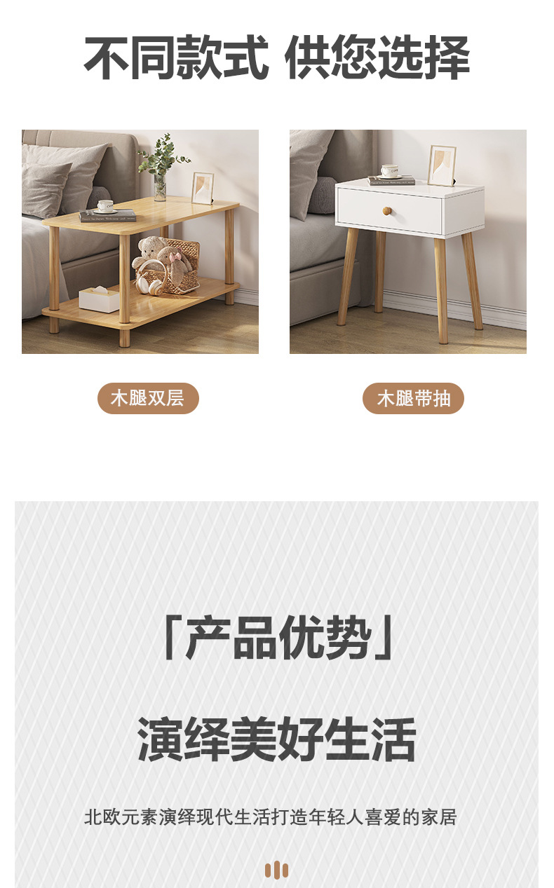 침대 옆 탁자, 심플한 침대 옆 수납장, 나무 다리 수납장, 침대 옆 작은 캐비닛, 서랍이 있는 가구, 심플하고 모던한 디자인스토어 가기