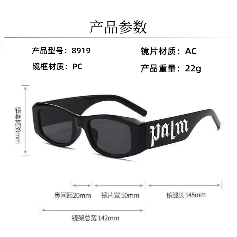 2024 블랙 프레임 펑크 레터 패션 선글라스 새로운 직사각형 힙합 핫 여자 선글라스 여성 헤어 도매스토어 가기