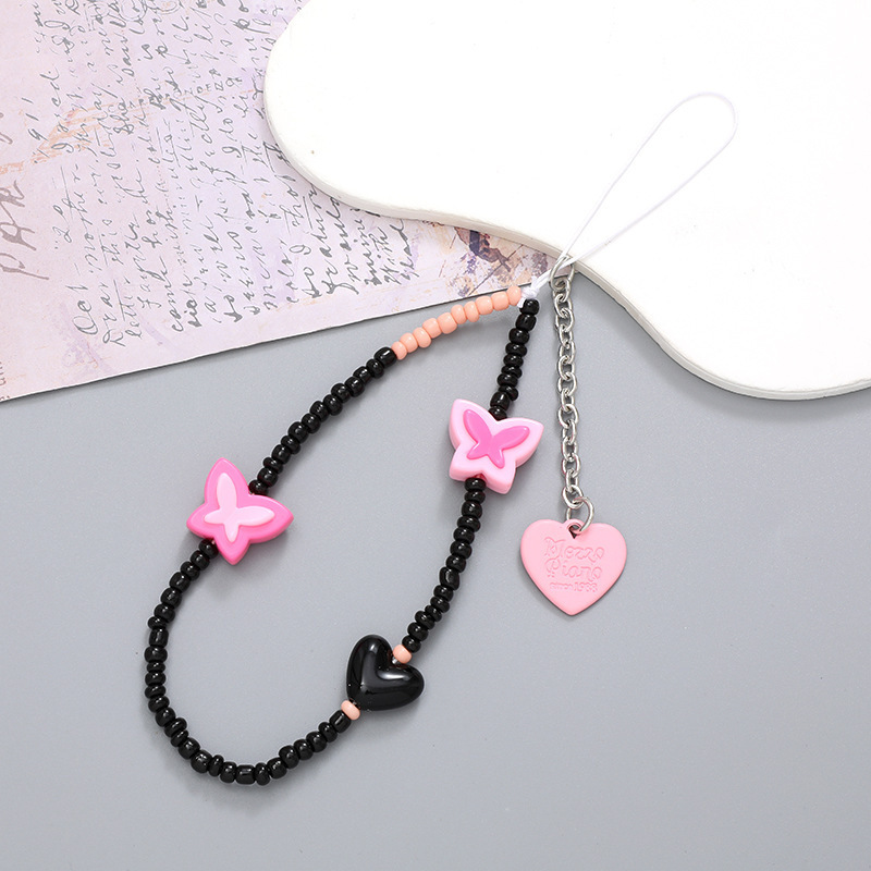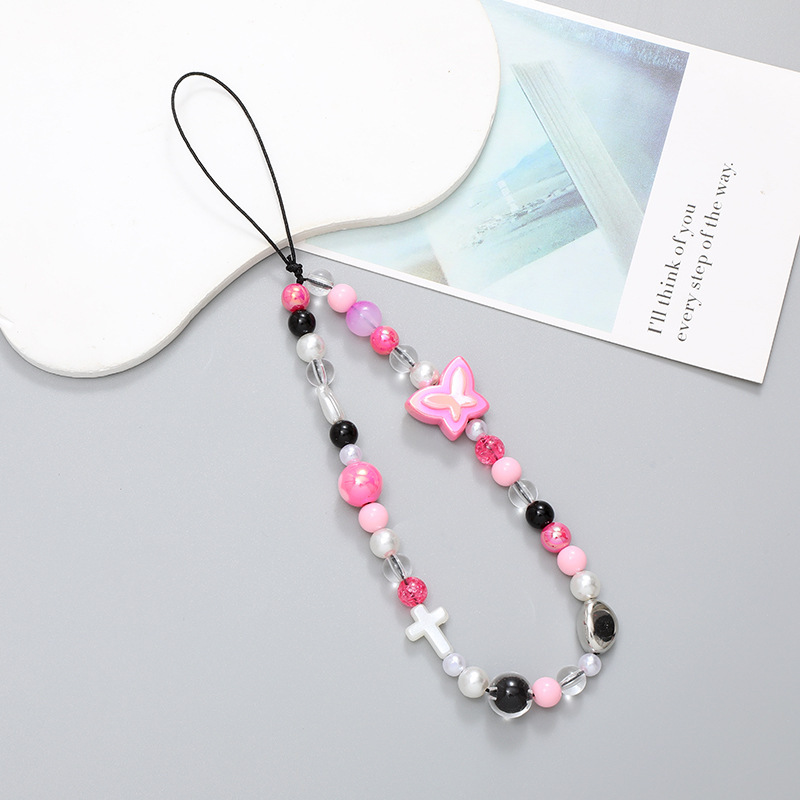 • K3309 핑크 크리스탈 비즈 나비 휴대폰 체인