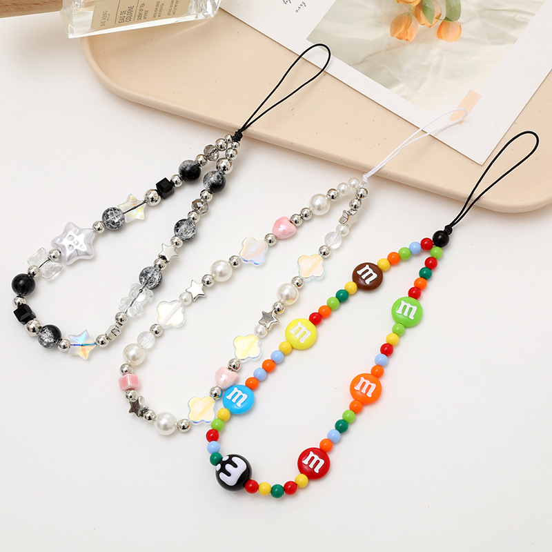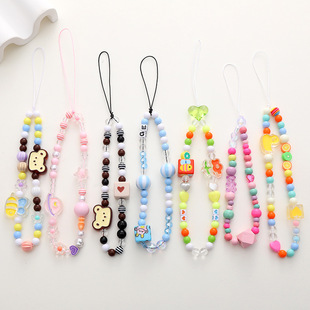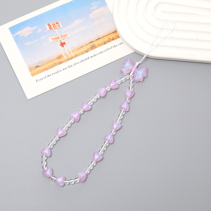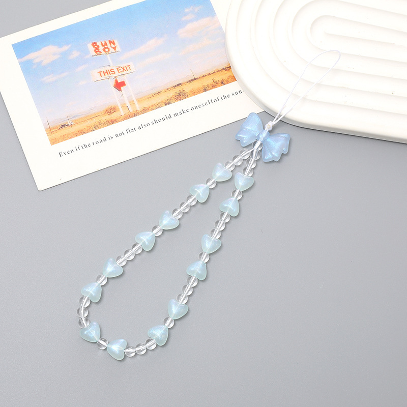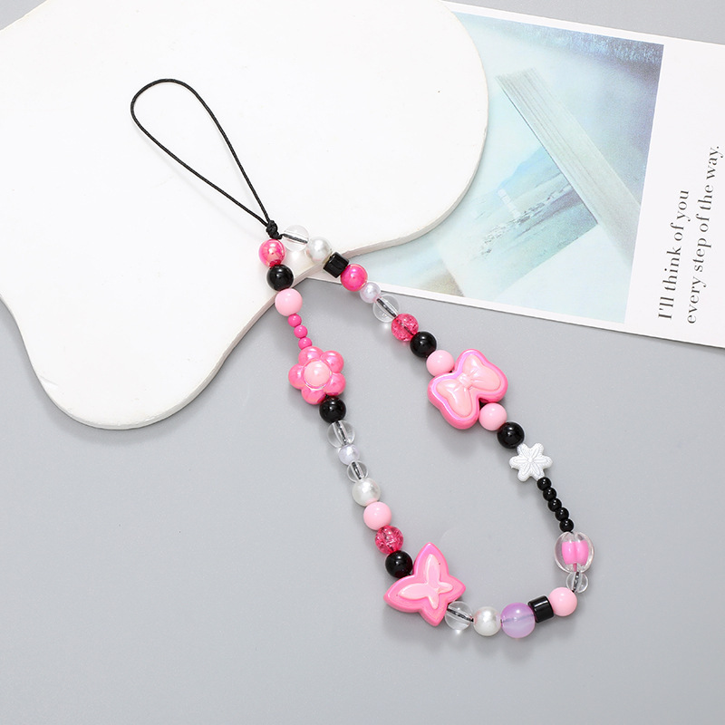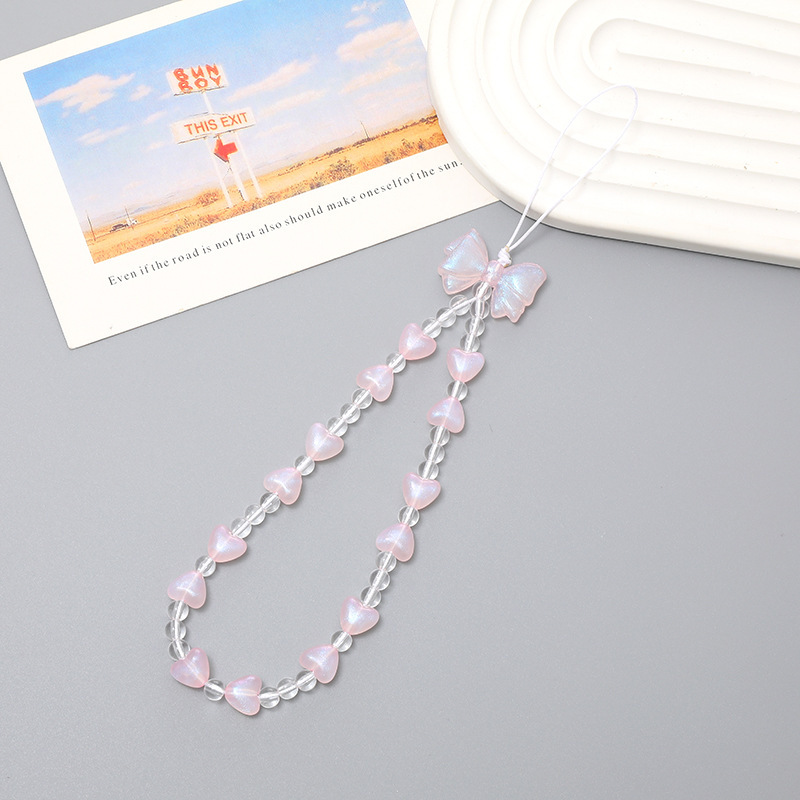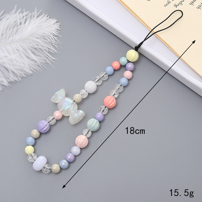 新款蝴蝶结手机链diy糖果串珠手机壳挂饰挂件短款防摔防丢手腕带