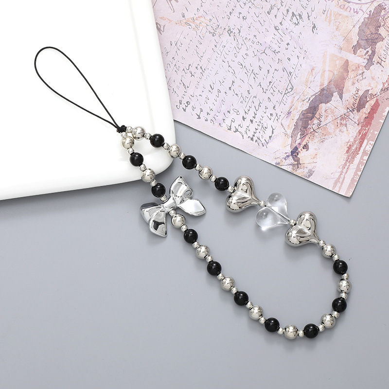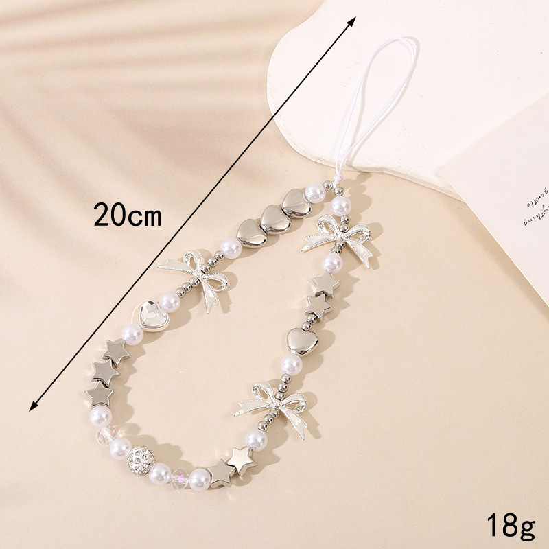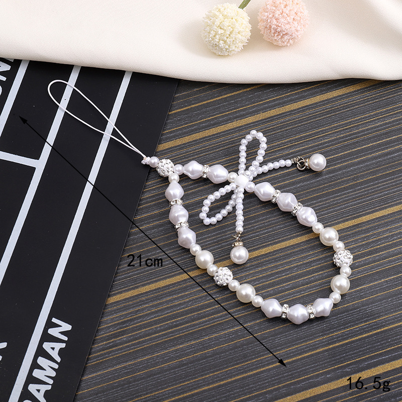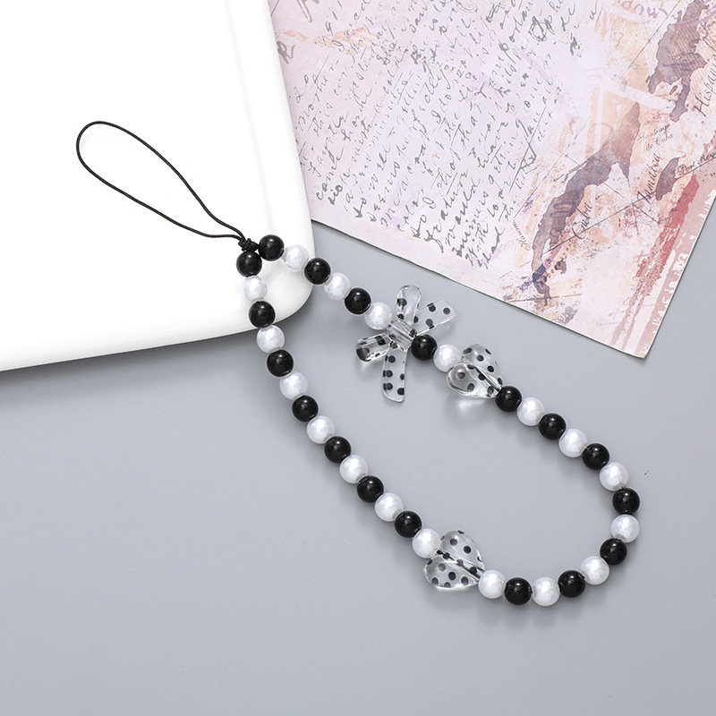 新款蝴蝶结串珠手机链手机壳挂饰挂件防摔防丢手腕带短款手机挂绳