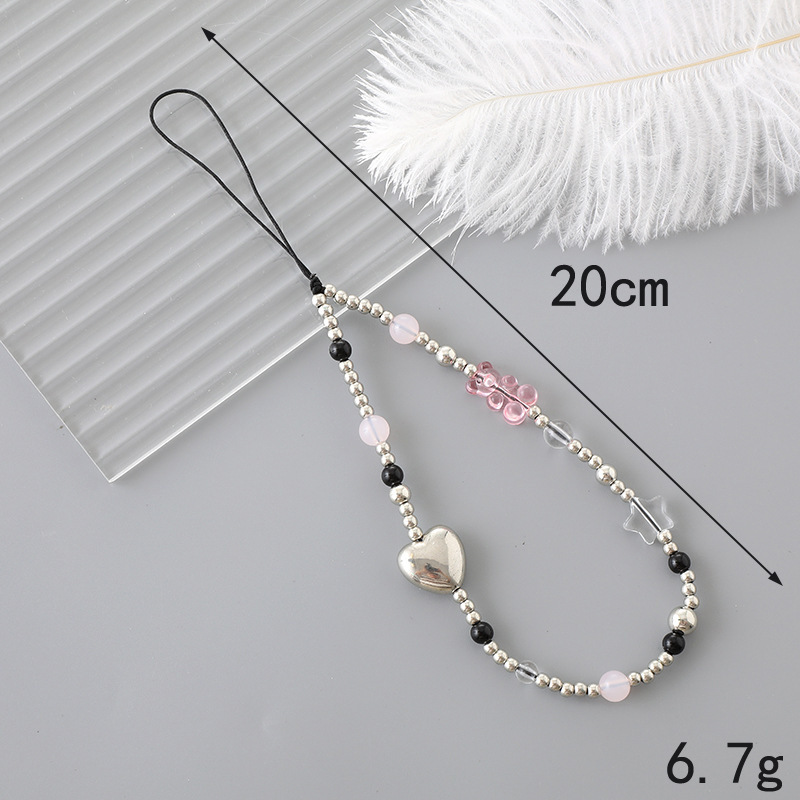 热卖网红串珠爱心手机链防丢防摔手机壳diy珍珠挂链短款手机挂绳