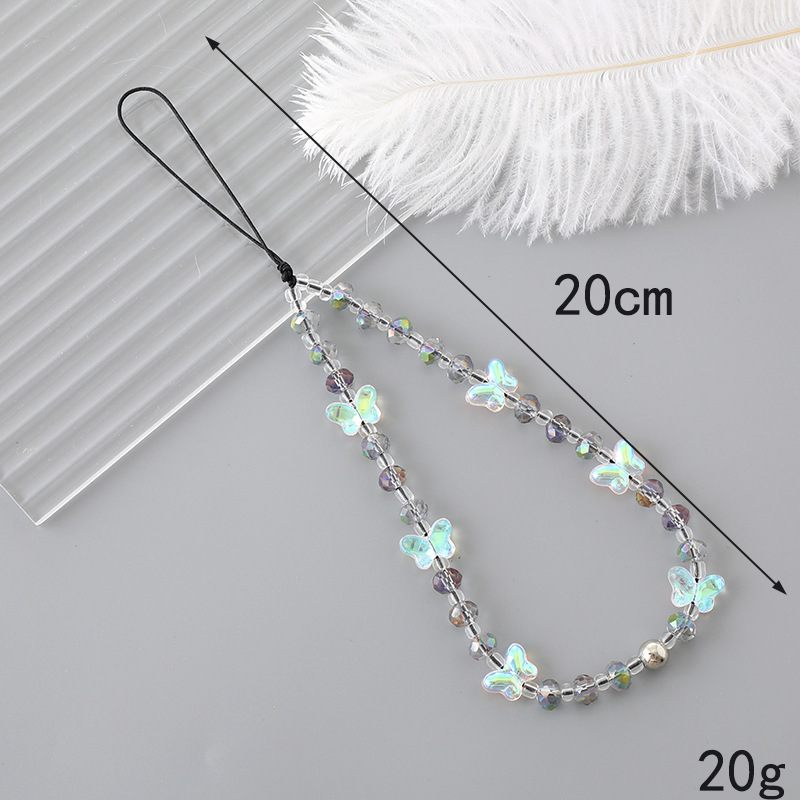 创意新款水晶蝴蝶手机链轻奢串珠挂绳手机壳钥匙扣挂件防丢链挂饰