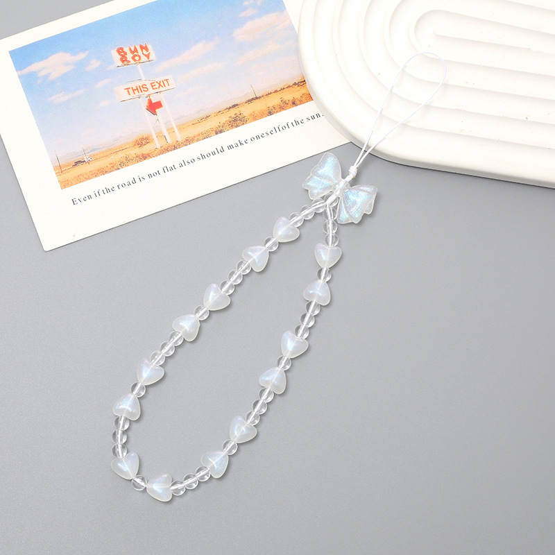 • K3047 특수 모양의 비즈 휴대폰 체인 화이트 리본
