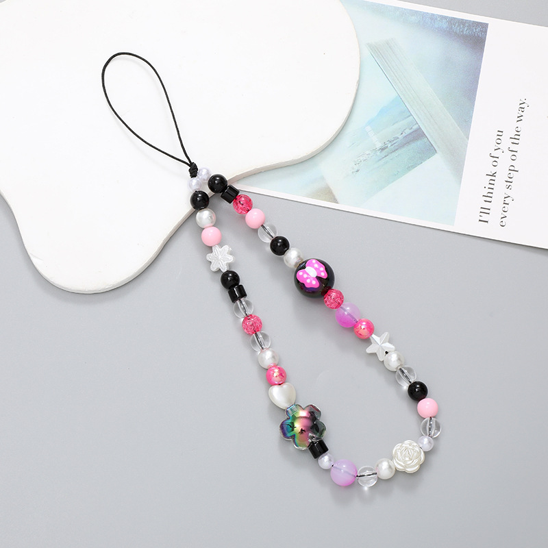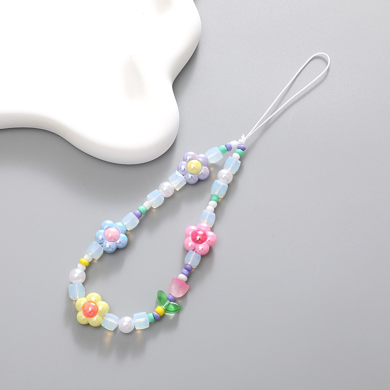 新款小香风手机链花朵吊坠手机挂绳手机壳串珠挂饰挂件防摔链女生