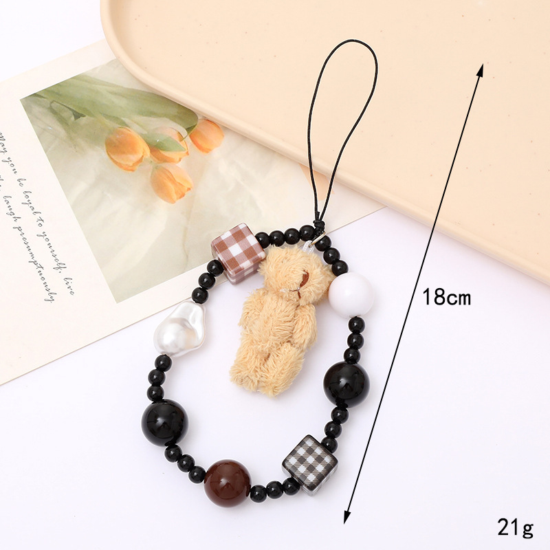 严选卡通小熊手机链diy手机壳饰品手工串珠方块手机挂绳挂饰挂件