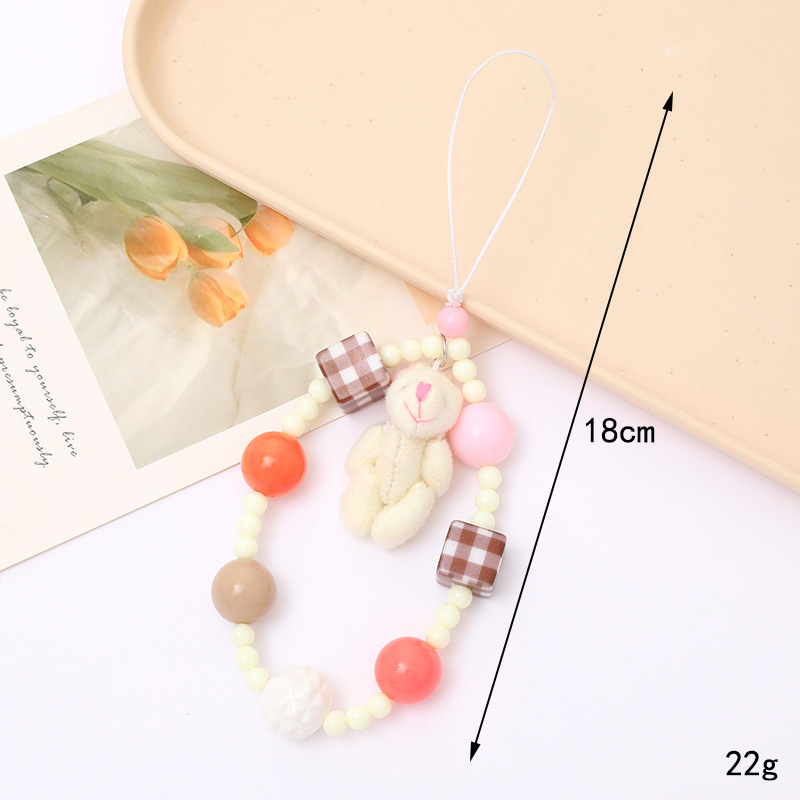 新款糖果色卡通小熊手机链diy手机壳挂链挂绳方形格子电镀手机链