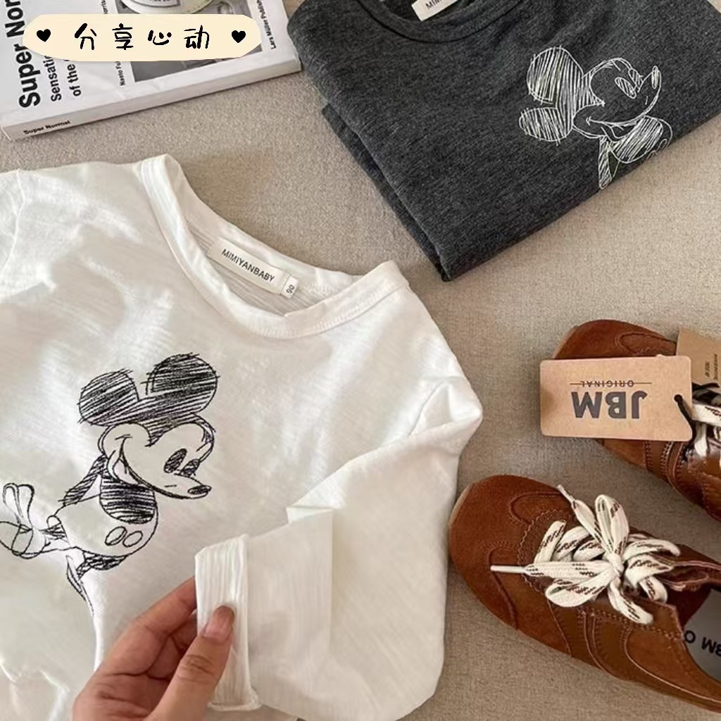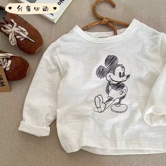 가을 2024 어린이 간단한 티셔츠 어린이 아기 만화 티셔츠 소년과 소녀 긴 소매베이스 레이어 셔츠 트렌디 탑스토어 가기