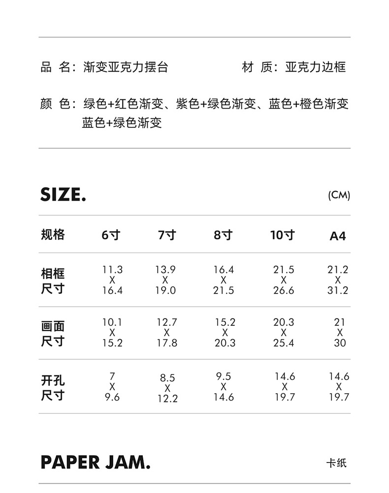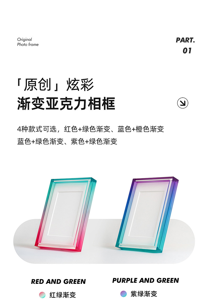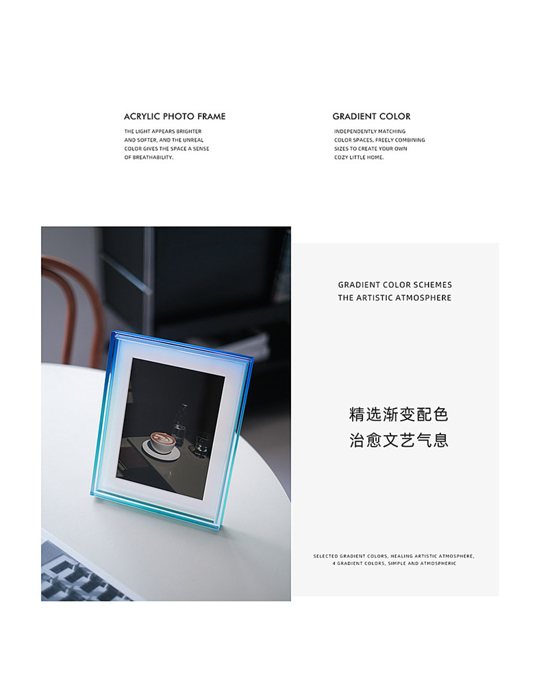 그라디언트 아크릴 테이블 높은 감각 공장 도매 인 스타일 창조적 인 그림 프레임 사진 프레임 6 인치 사진 프레임스토어 가기