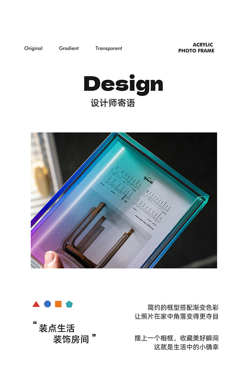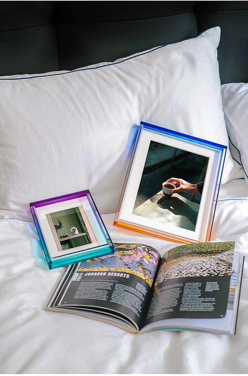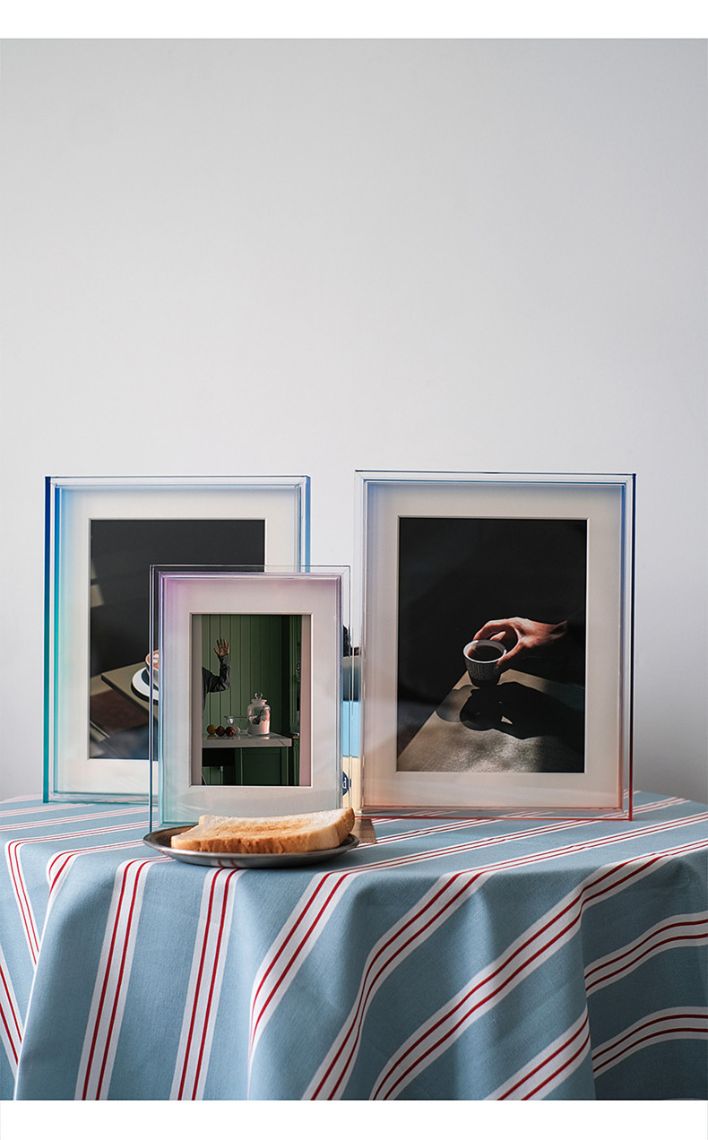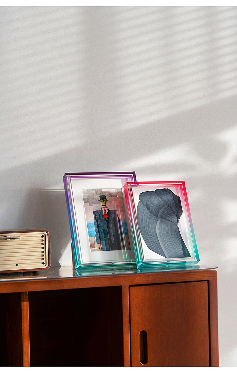 그라디언트 아크릴 테이블 높은 감각 공장 도매 인 스타일 창조적 인 그림 프레임 사진 프레임 6 인치 사진 프레임