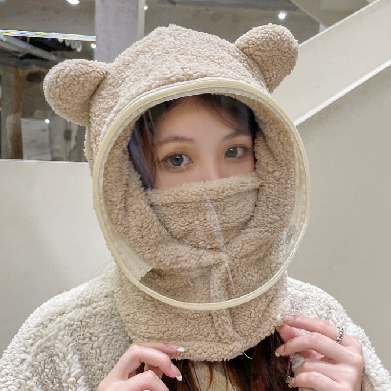 모자 여성 겨울 방풍 모자 성인 학생 전기 자동차 따뜻한 방풍 마스크 곰 스카프 풀오버 모자 올인원 모자스토어 가기